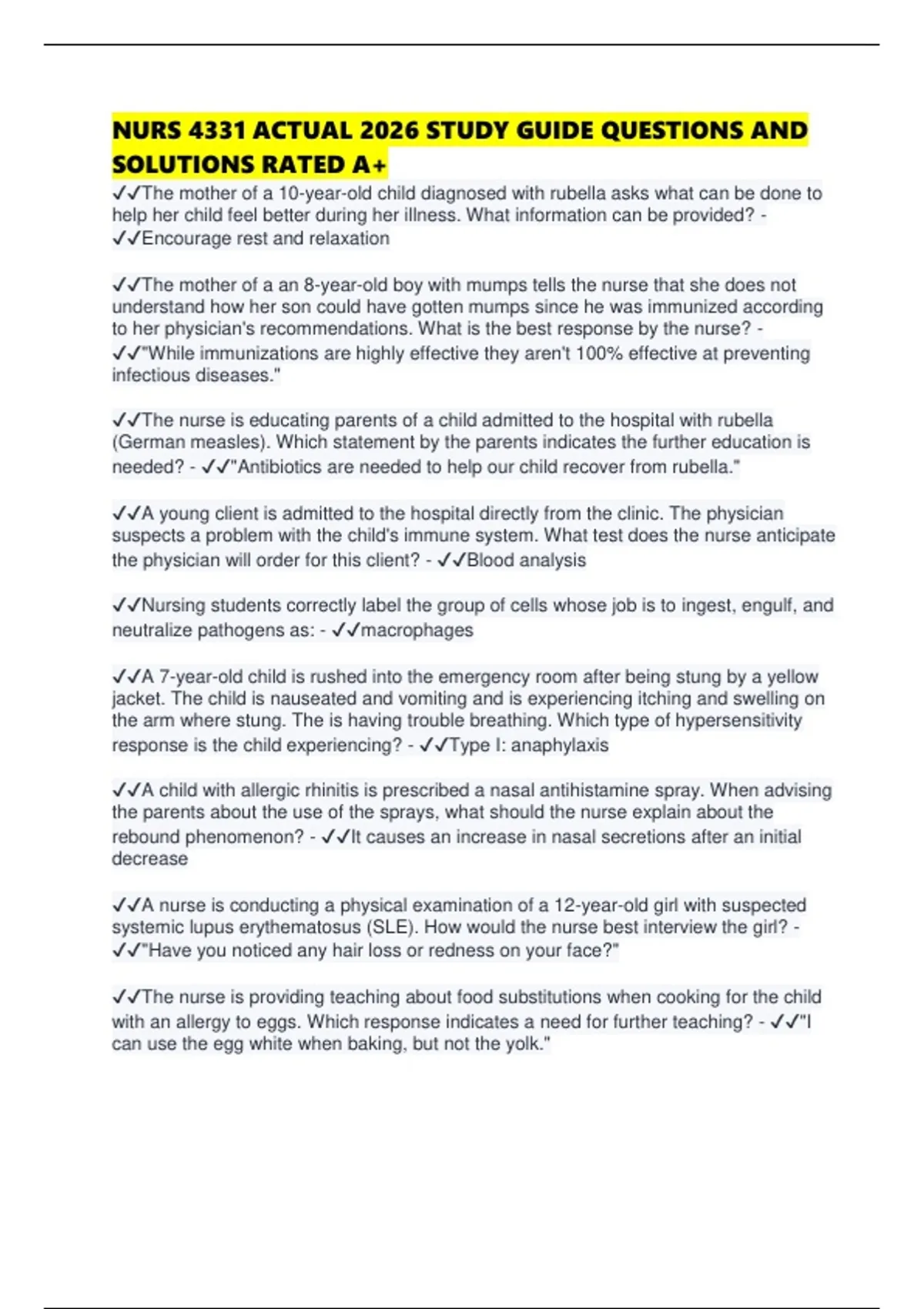 NURS 4331 ACTUAL 2026 STUDY GUIDE QUESTIONS AND SOLUTIONS RATED A+