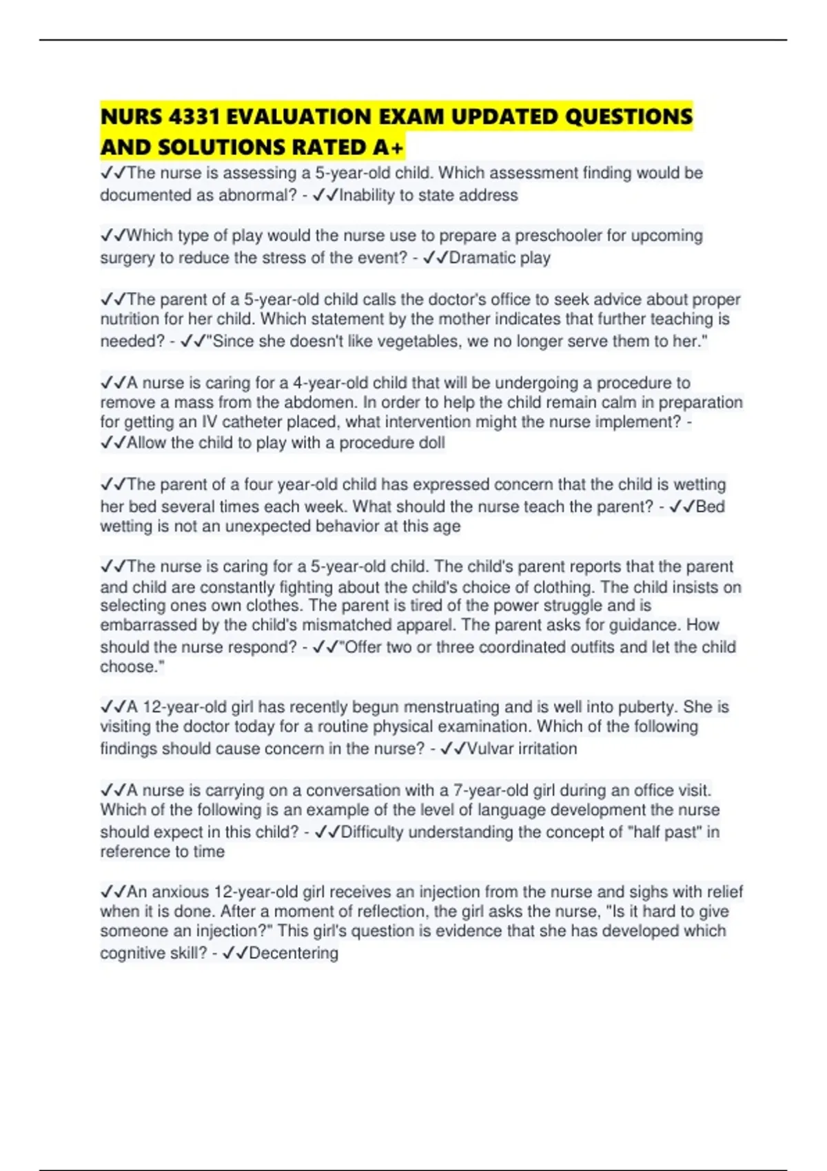 NURS 4331 EVALUATION EXAM UPDATED QUESTIONS AND SOLUTIONS RATED A+