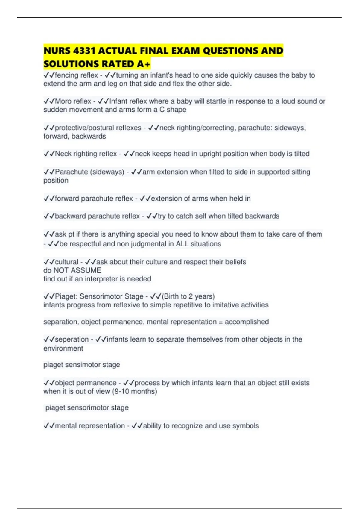 NURS 4331 ACTUAL FINAL EXAM QUESTIONS AND