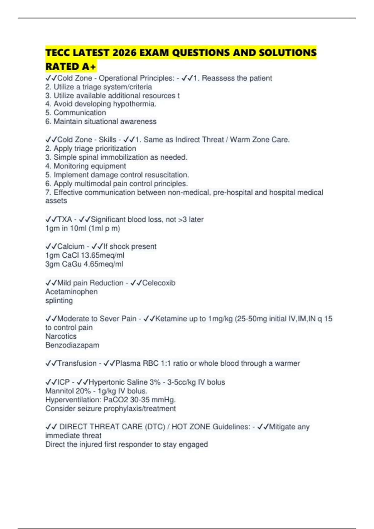 ✔✔Cold Zone - Skills - ✔✔1. Same as Indirect Threat / Warm Zone Care.