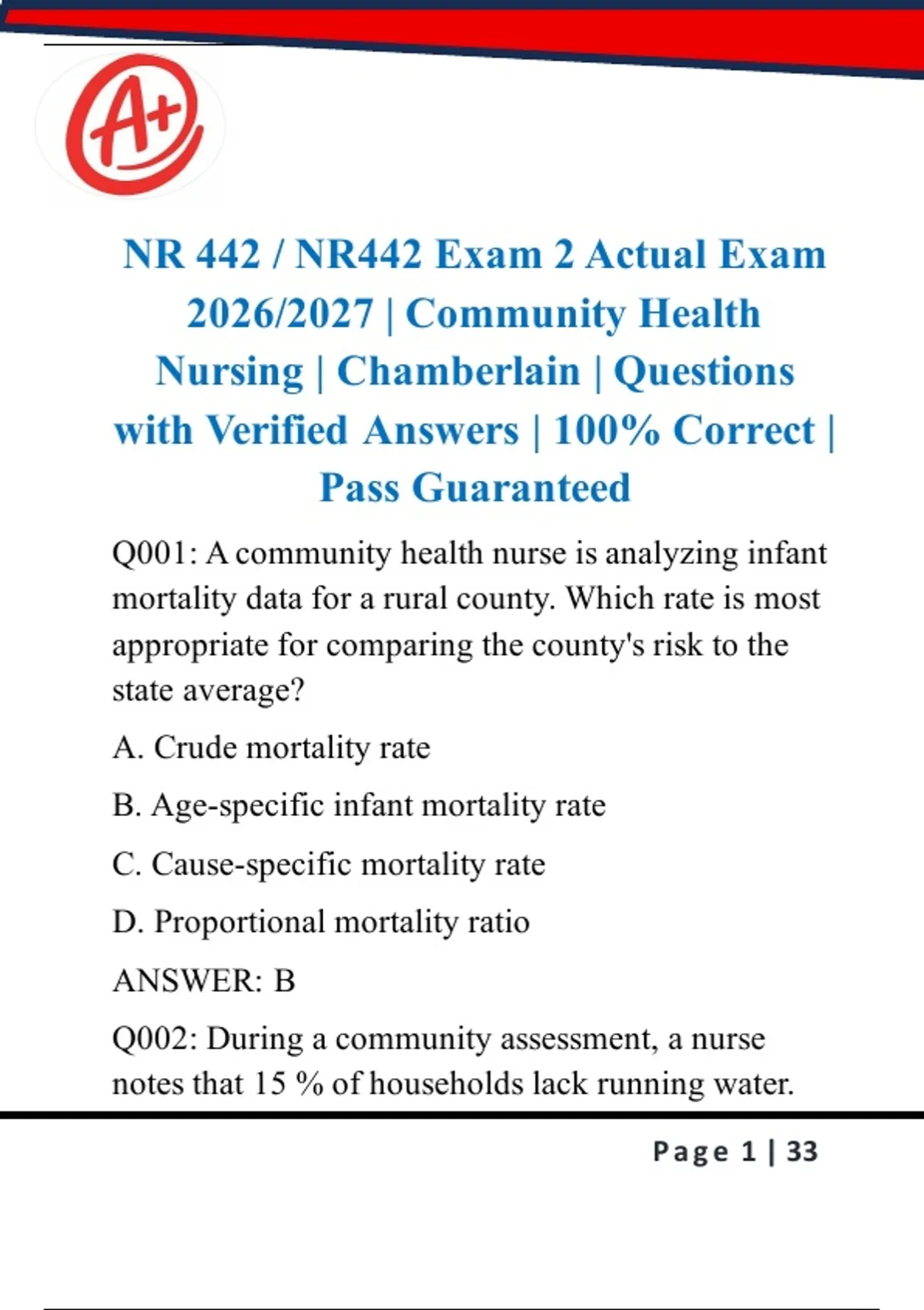Q002: During a community assessment, a nurse