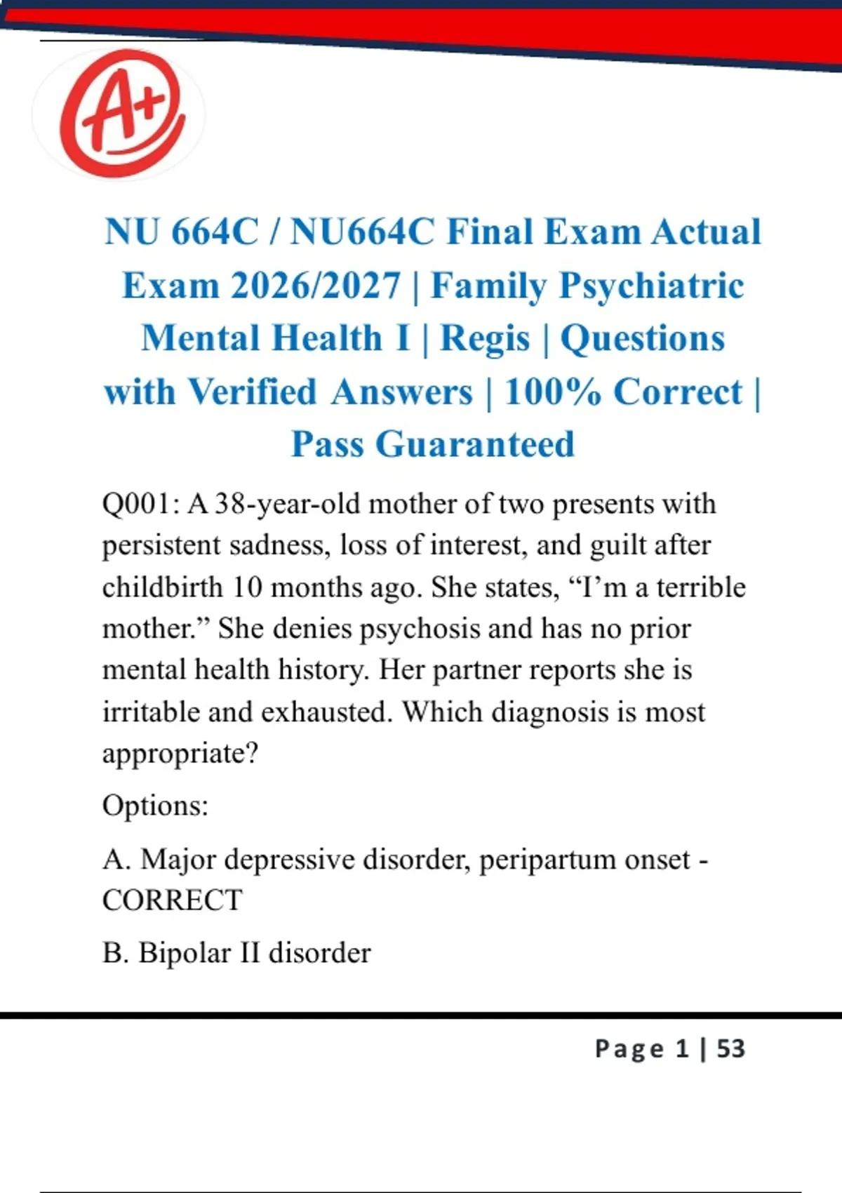 Mental Health I | Regis | Questions