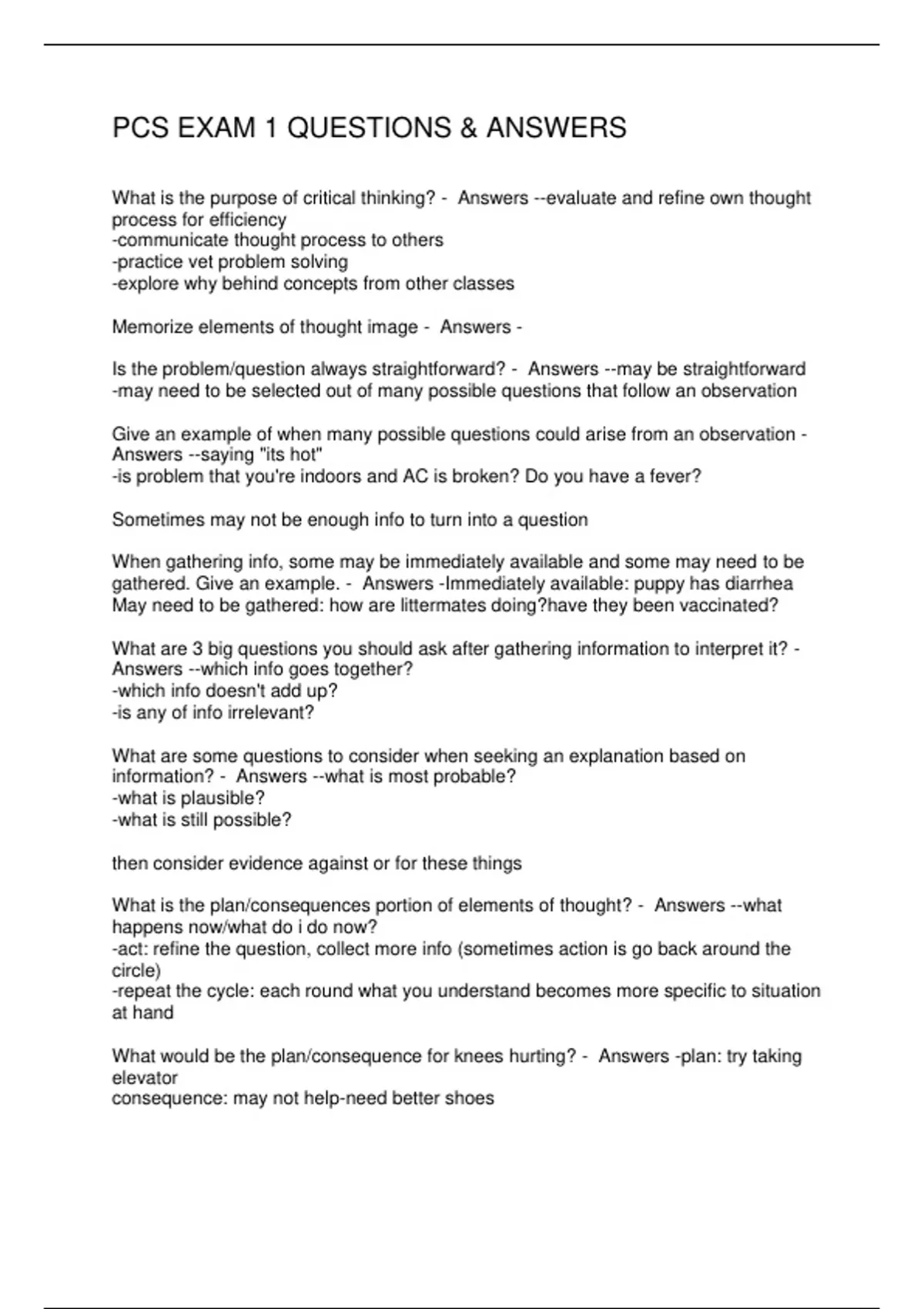 PCS EXAM 1 QUESTIONS & ANSWERS