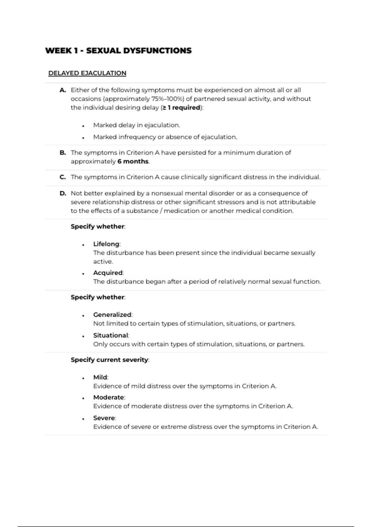 WEEK 1 - SEXUAL DYSFUNCTIONS