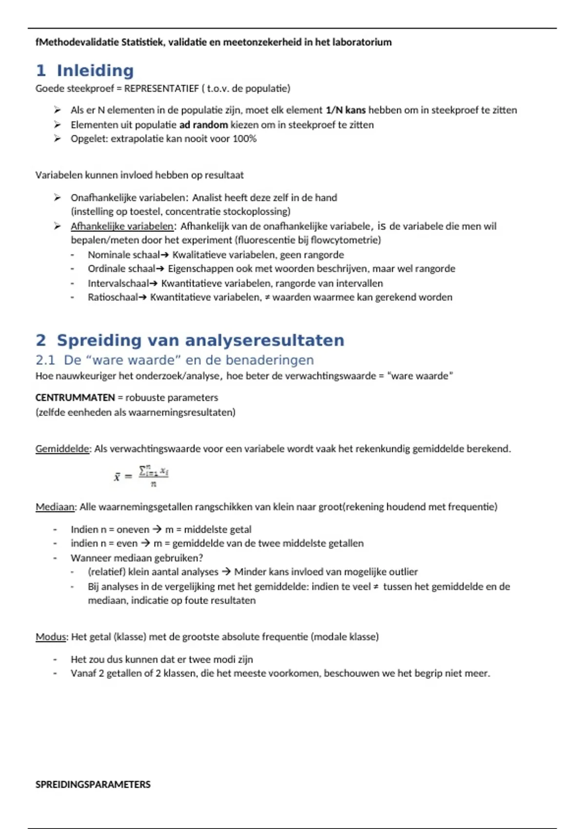 fMethodevalidatie Statistiek, validatie en meetonzekerheid in het laboratorium
