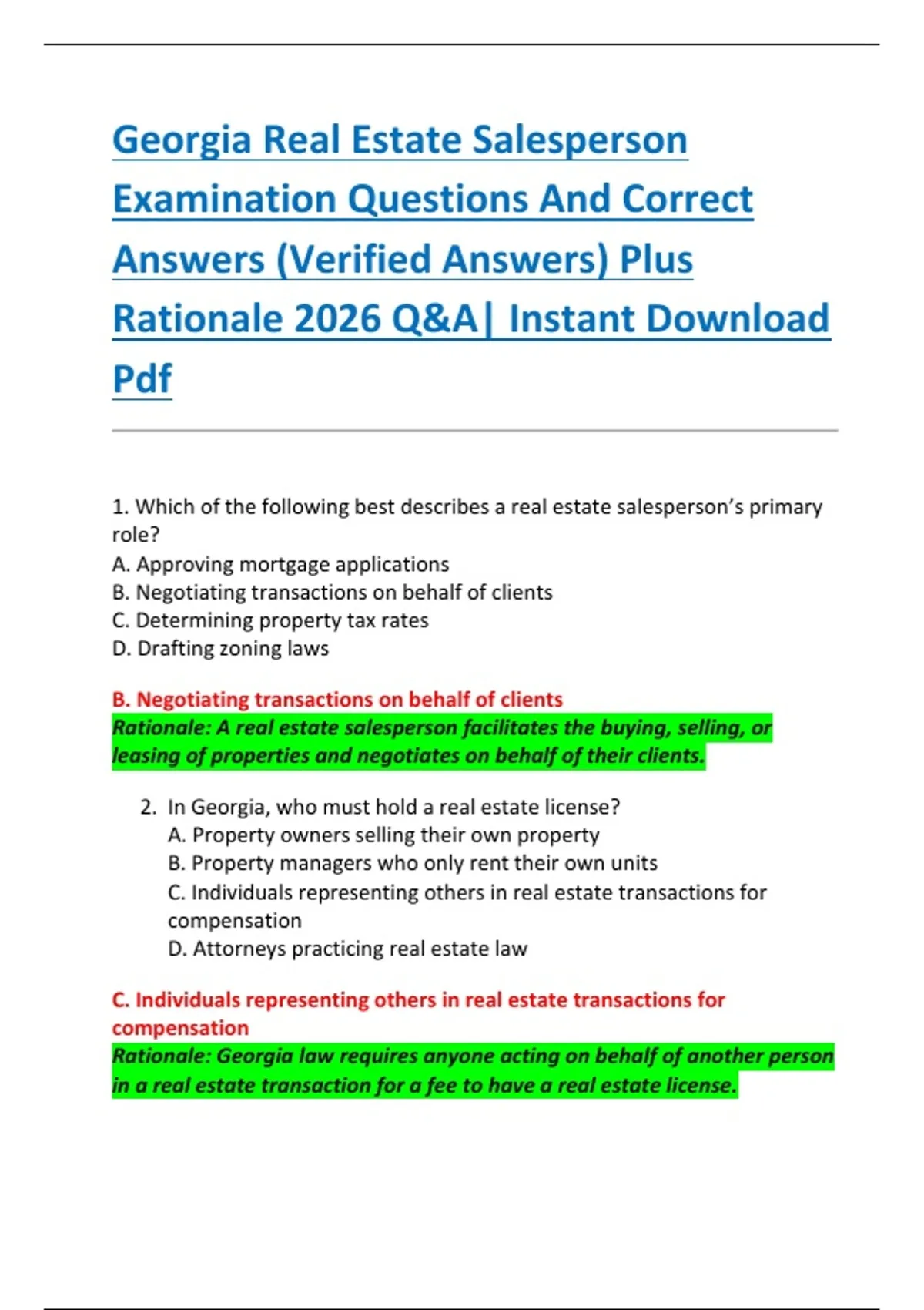 2. In Georgia, who must hold a real estate license?