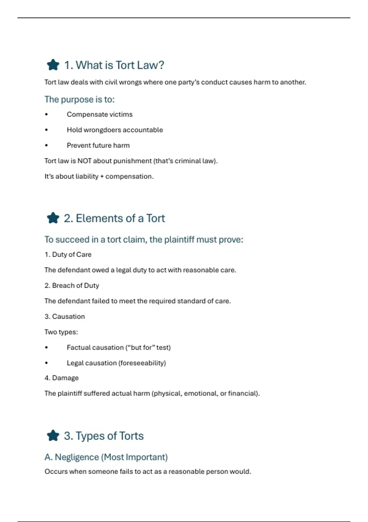 ⭐ 2. Elements of a Tort