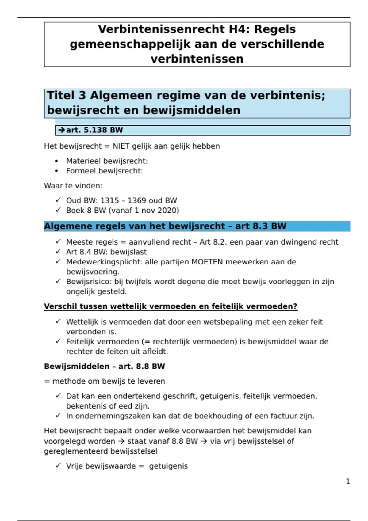 Samenvatting H4: niet nakoming van verbintenis, bewijsmiddelen, bewijsrecht, enz