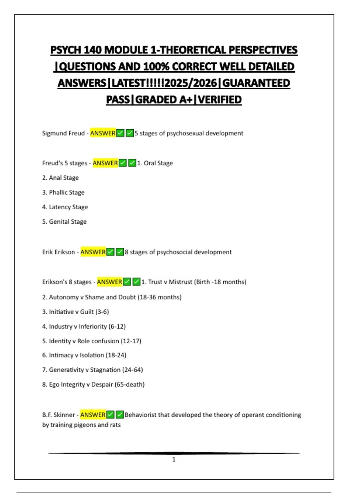 Erik Erikson - ANSWER 8 stages of psychosocial development