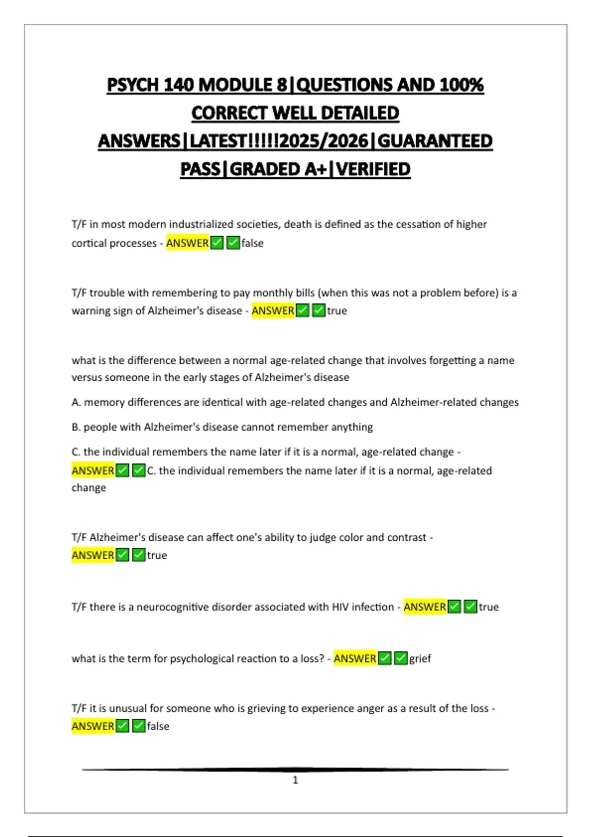 B. age-related changes - ANSWER B. age-related changes