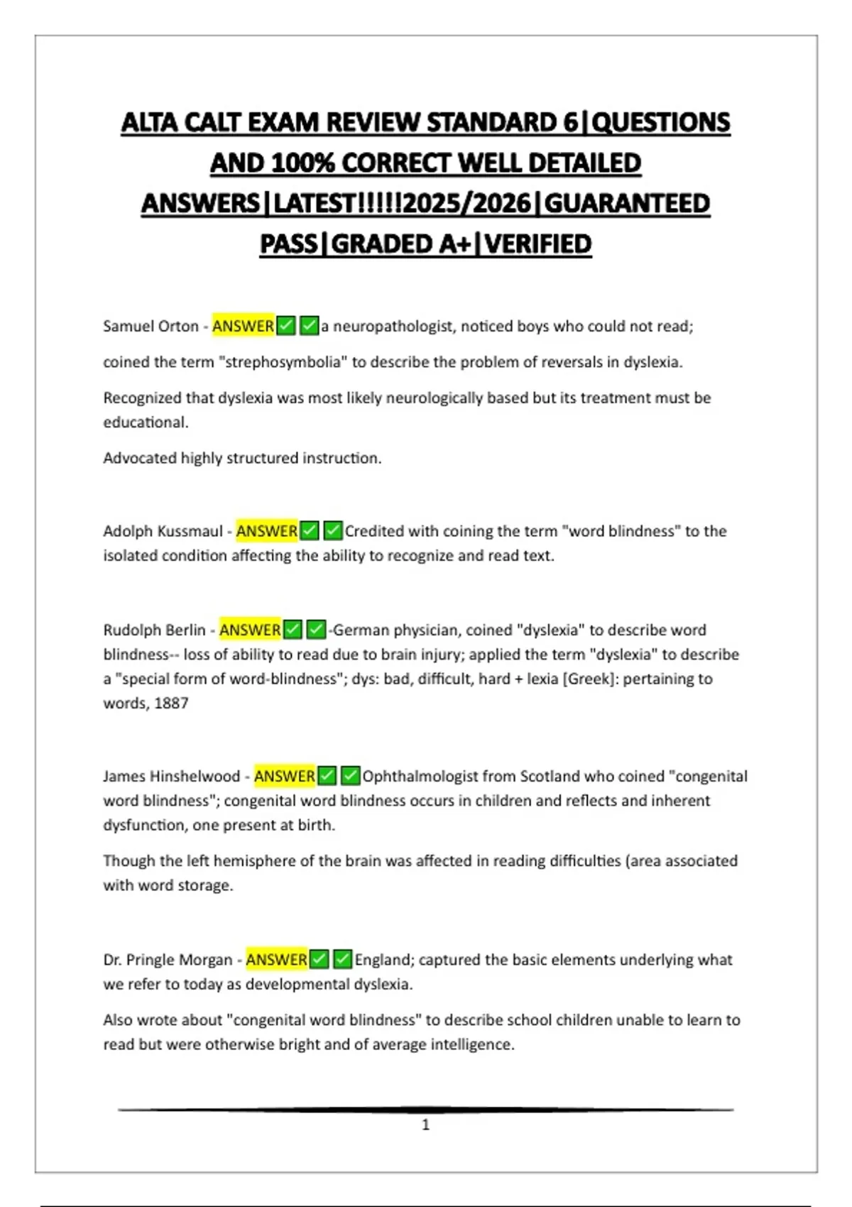 Rudolph Berlin - ANSWER -German physician, coined "dyslexia" to describe word