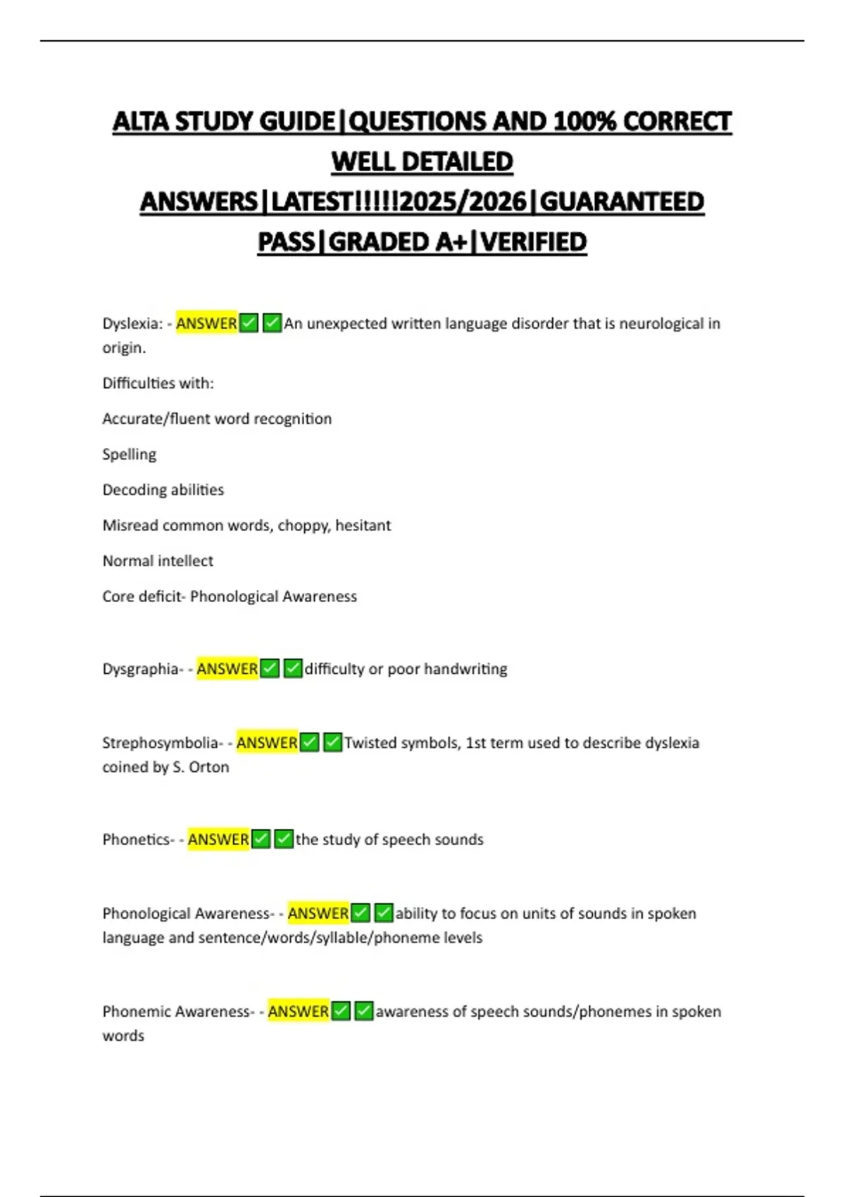 Strephosymbolia- - ANSWER Twisted symbols, 1st term used to describe dyslexia