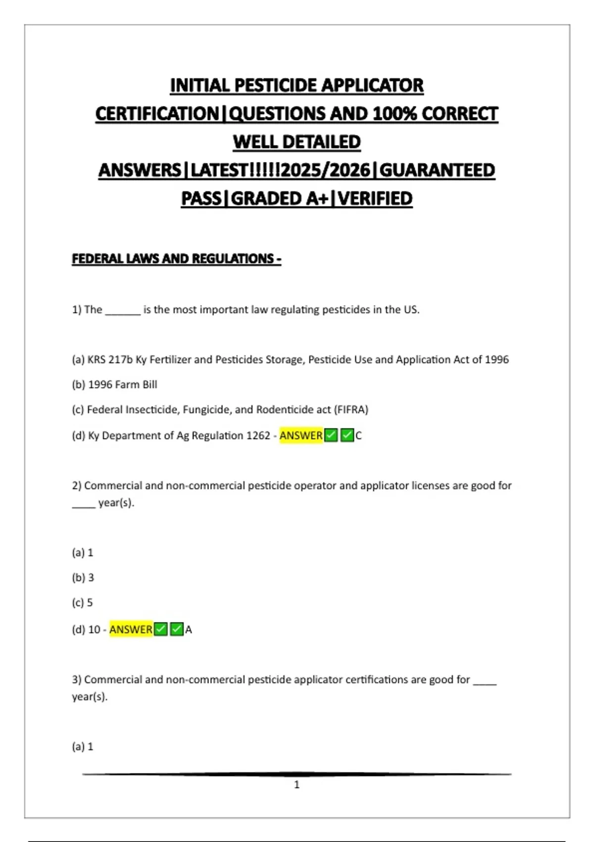 (d) Ky Department of Ag Regulation 1262 - ANSWER C