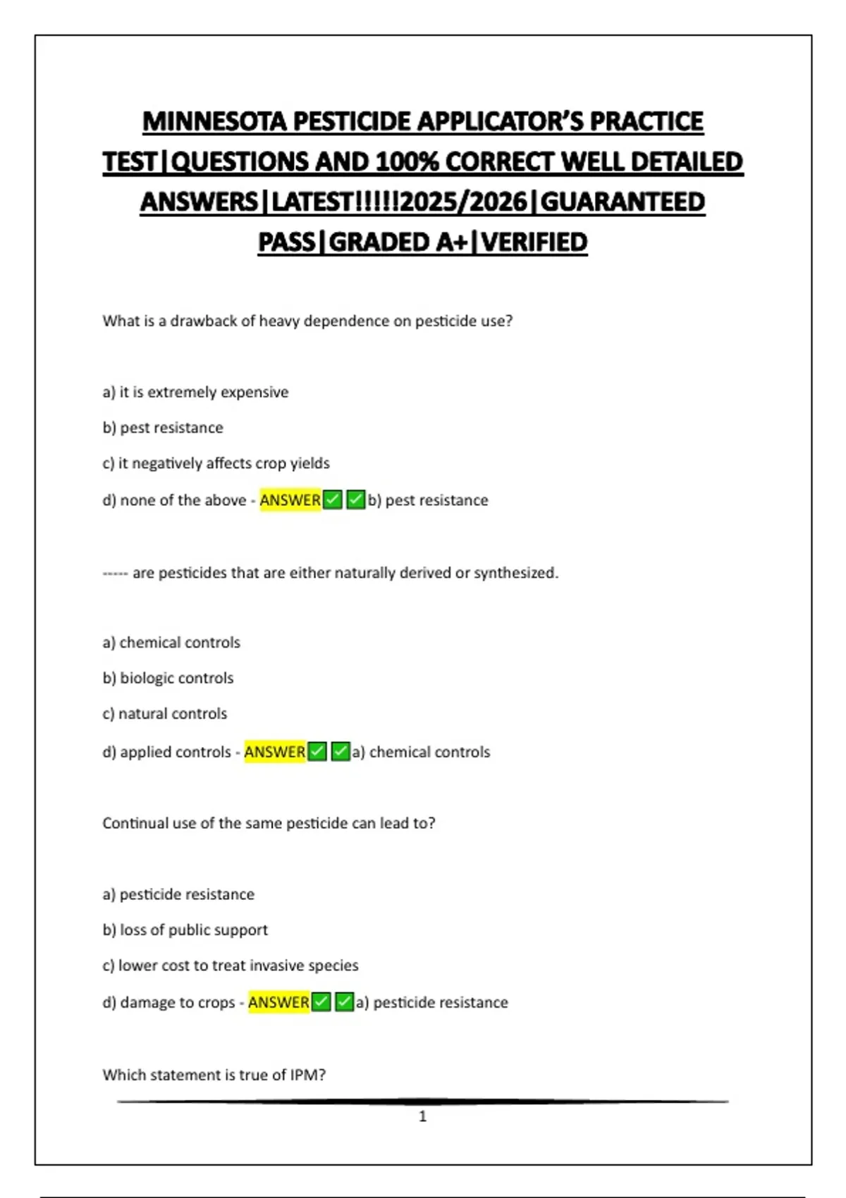 d) damage to crops - ANSWER a) pesticide resistance