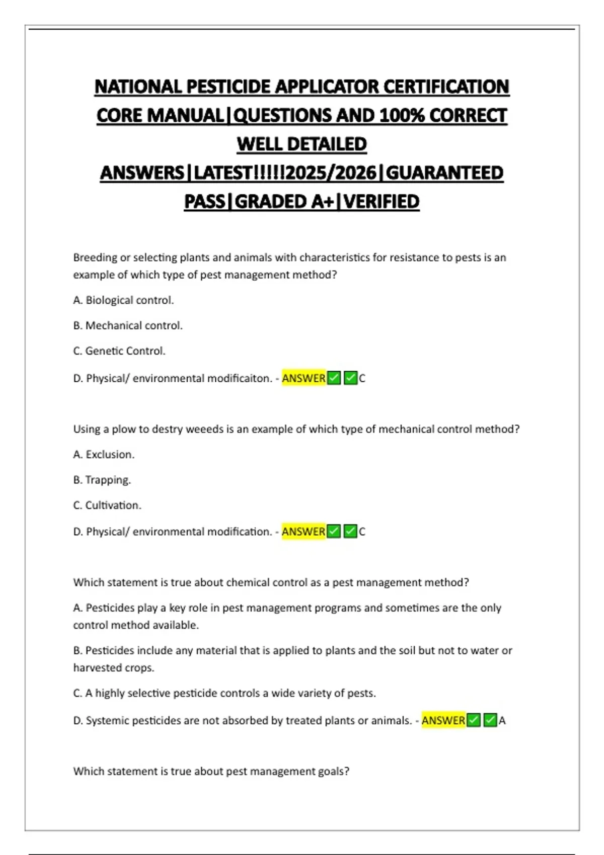 D. Over large areas, eradication is a practical approach to pest cotnrol. - ANSWER C