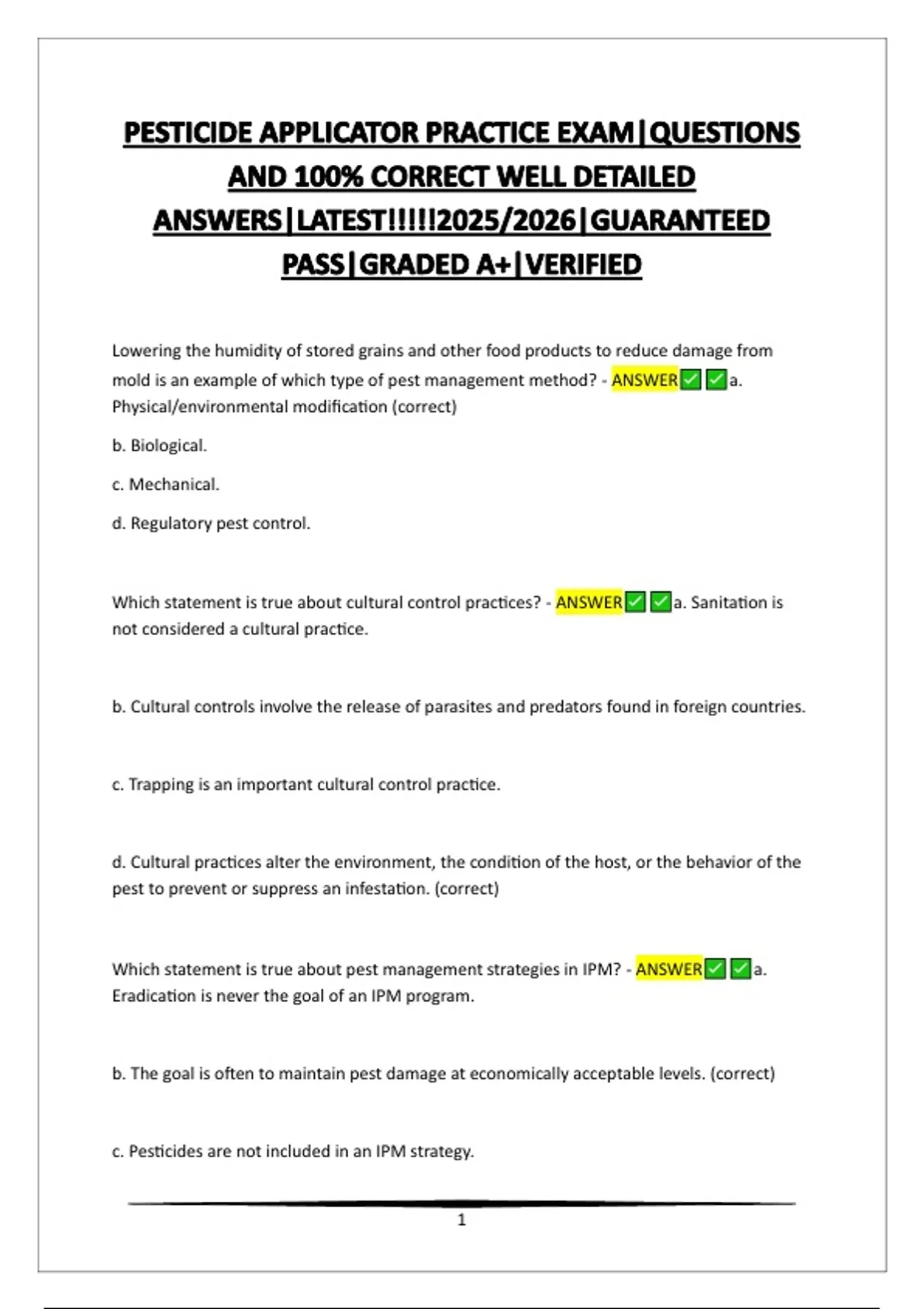 Which statement is true about cultural control practices? - ANSWER a. Sanitation is