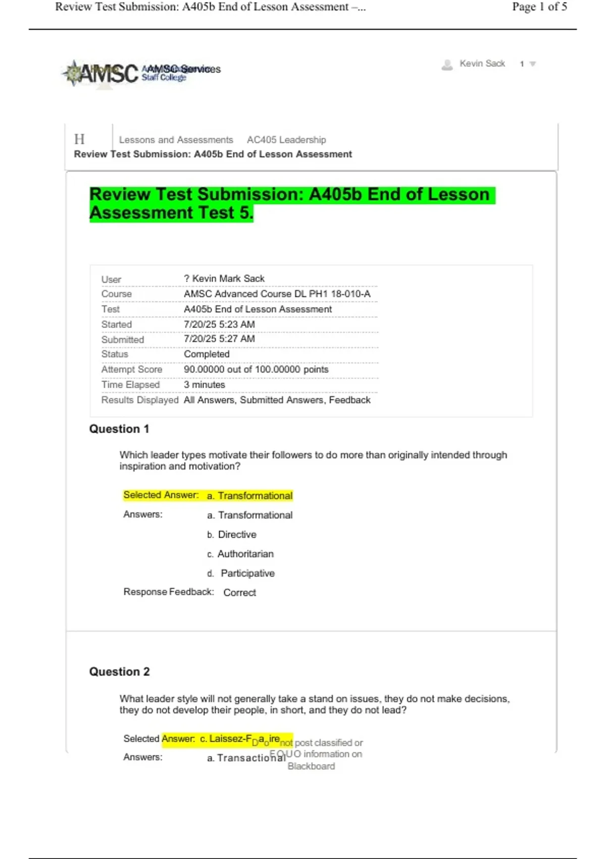 H Lessons and Assessments AC405 Leadership