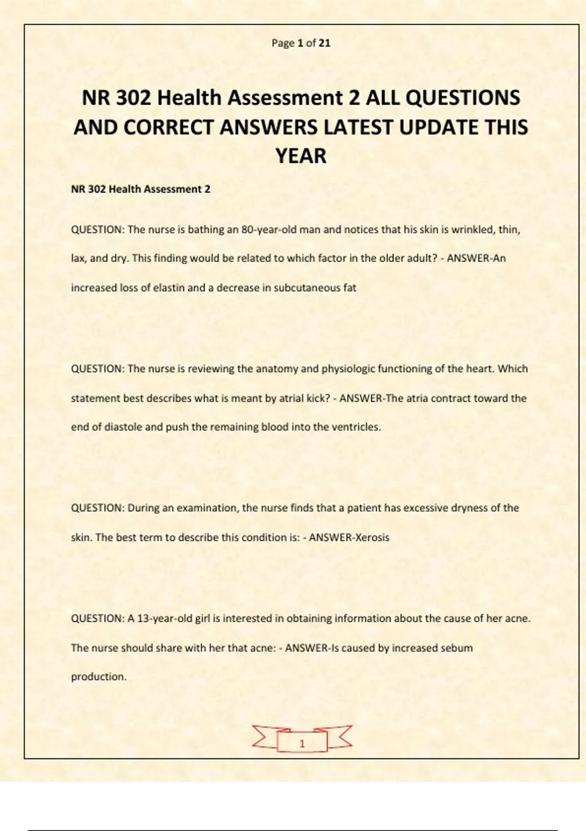 NR 302 Health Assessment 2 ALL QUESTIONS AND CORRECT ANSWERS LATEST UPDATE THIS YEAR