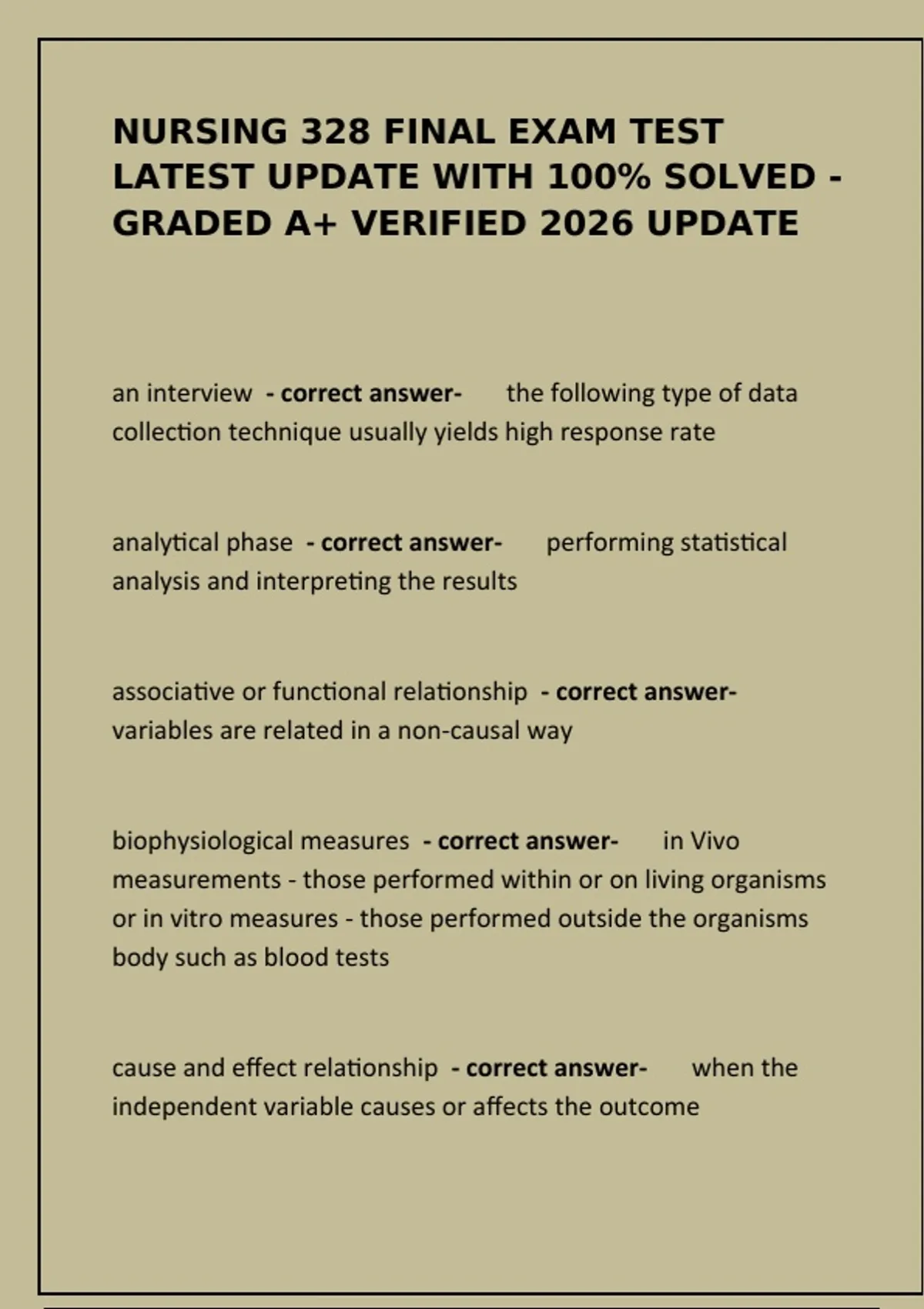 Nursing 328 Final Exam Test Bank 2026: Verified Q&A for Maternal-Newborn Nursing