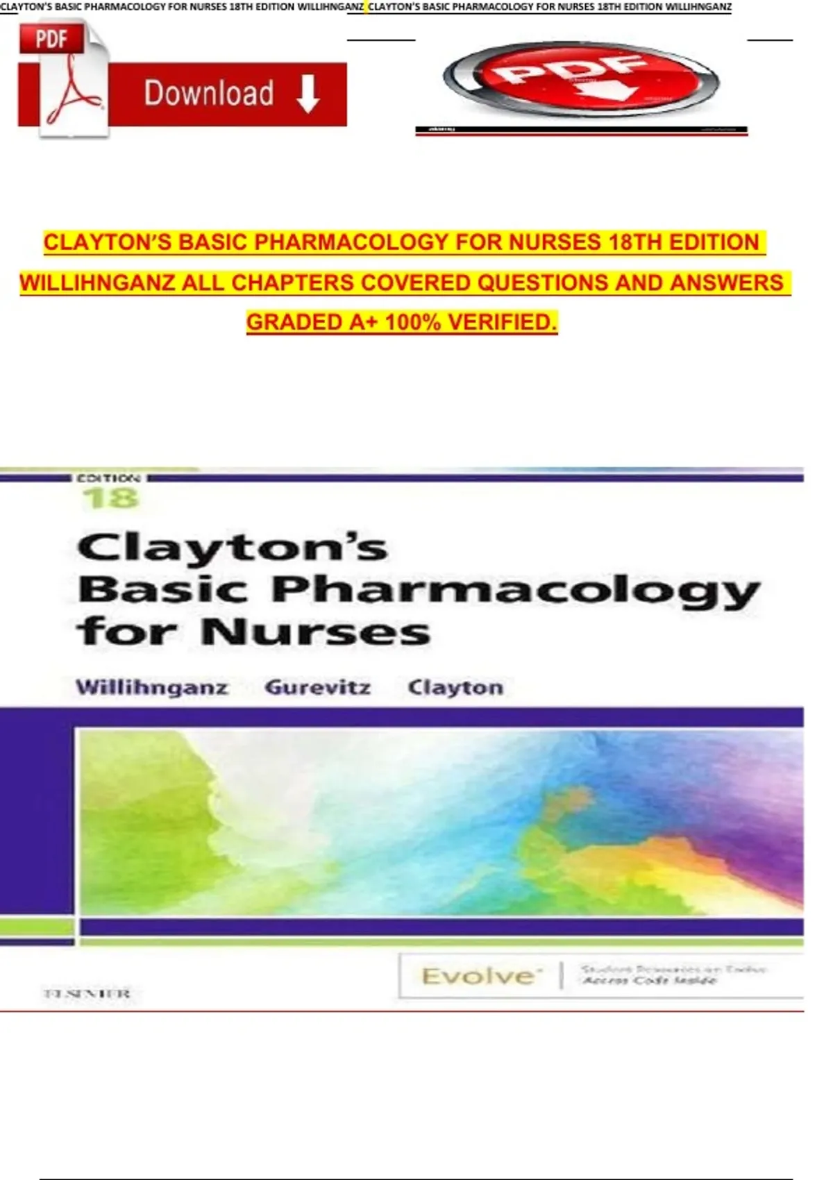 Clayton’s Basic Pharmacology for Nurses – 18th Edition (Willihnganz) Test Bank | All Chapters Questions & Answers