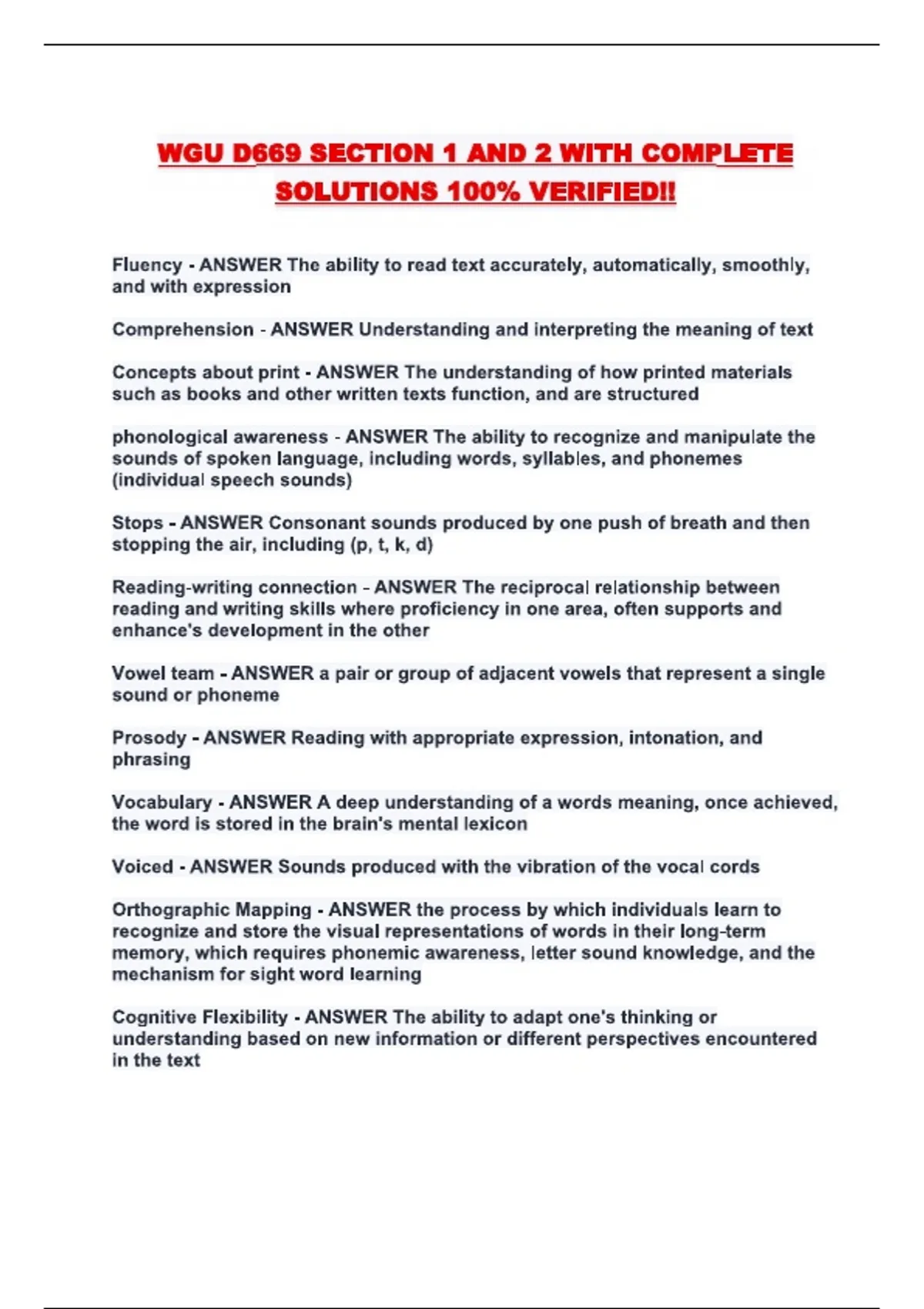 Prepare for the WGU D669 Section 1 and 2 Exam with verified questions and expert answers. High-quality resource for students to review all key concepts, practice effectively, and excel in 2026/2027.