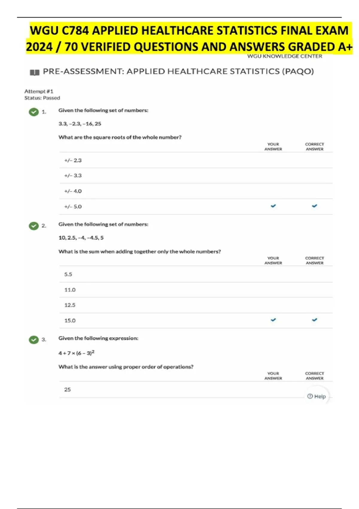 WGU C784 Applied Healthcare Statistics Final Exam (2026/2027) | Verified Questions & Answers