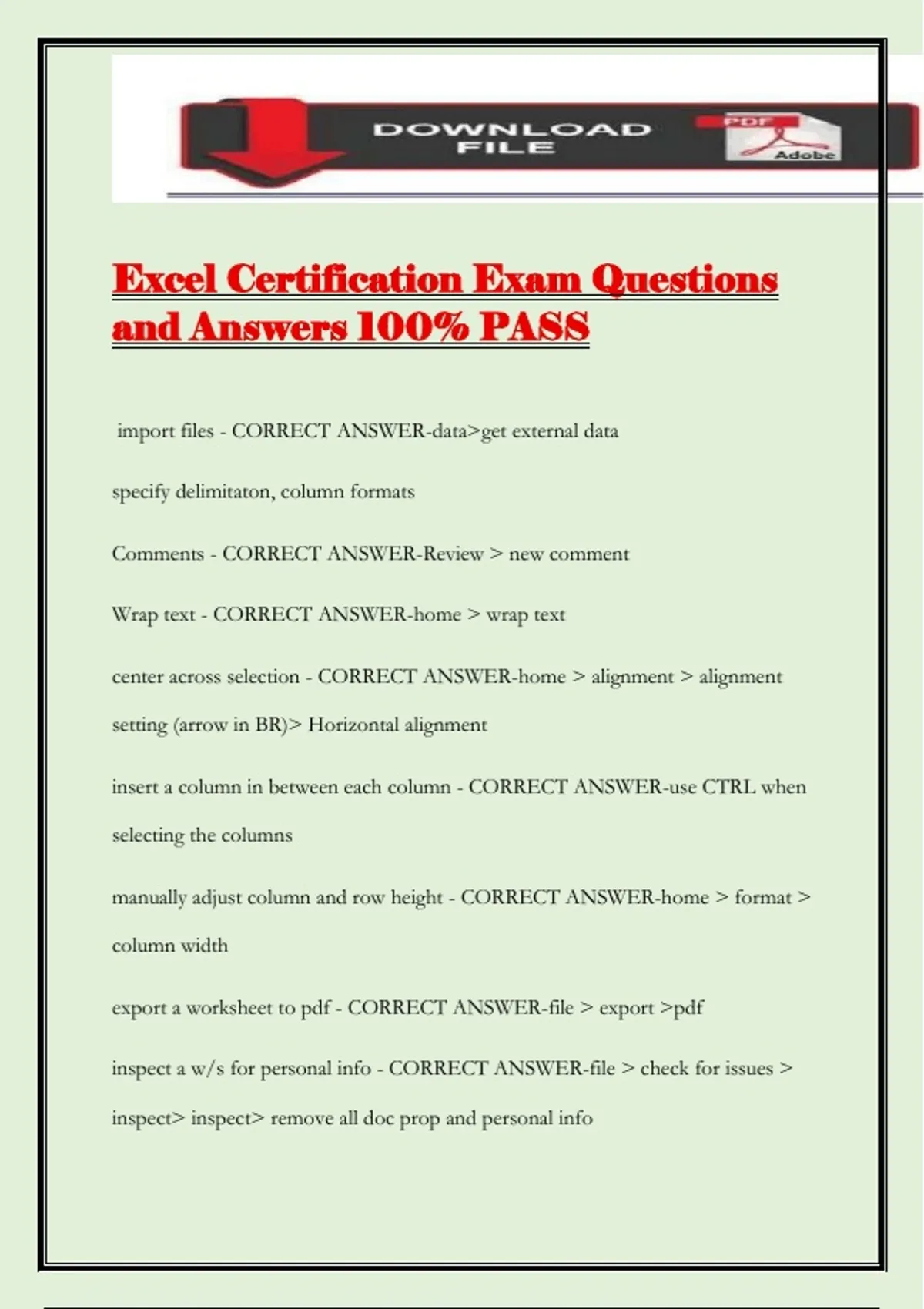 Excel Certification Exam Questions and Answers 100% PASS