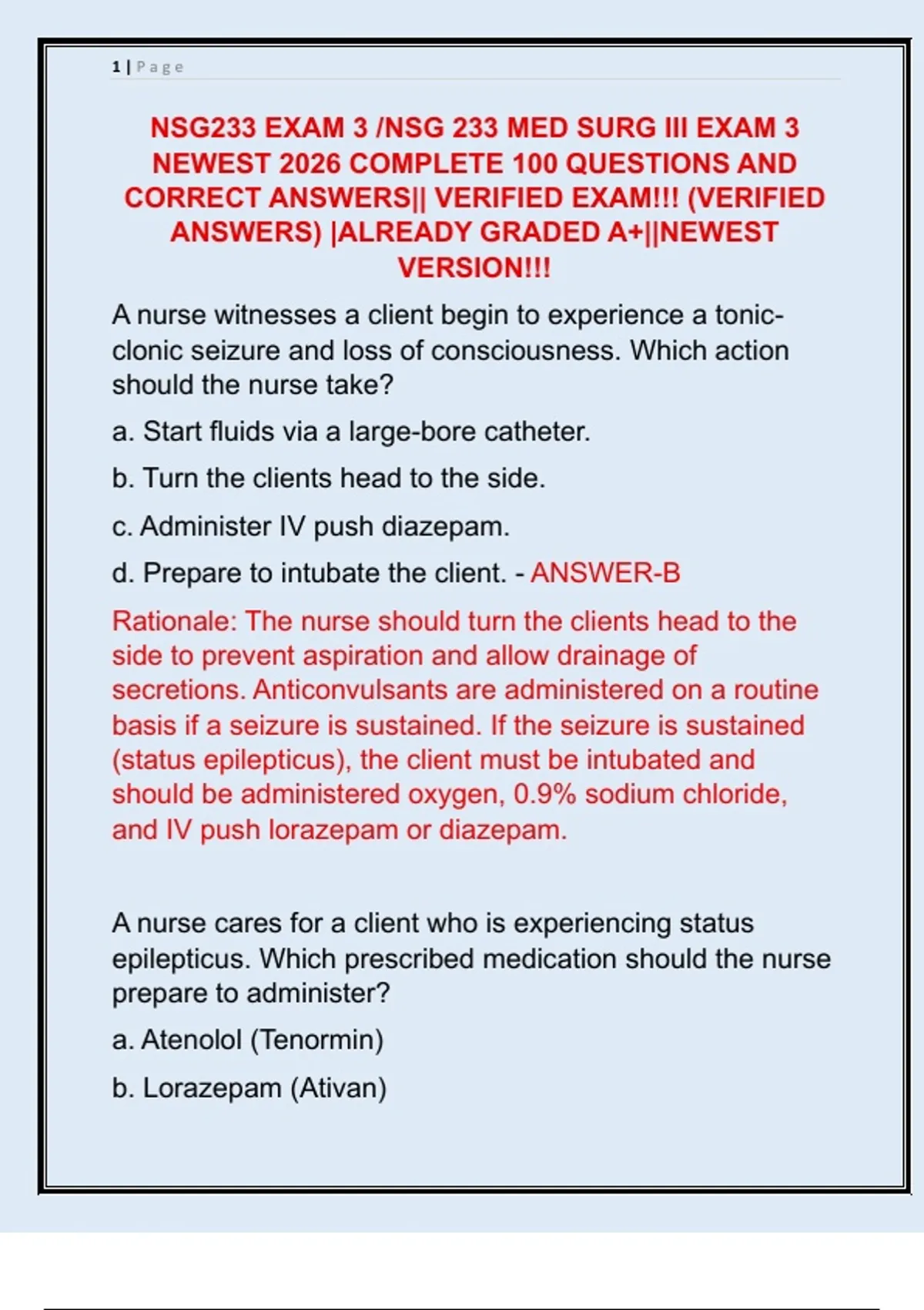 CORRECT ANSWERS|| VERIFIED EXAM!!! (VERIFIED