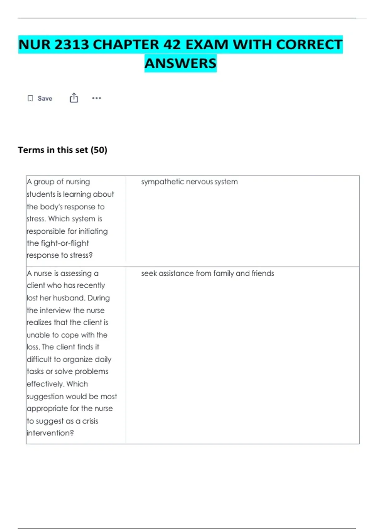 NUR 2313 CHAPTER 42 EXAM WITH CORRECT
