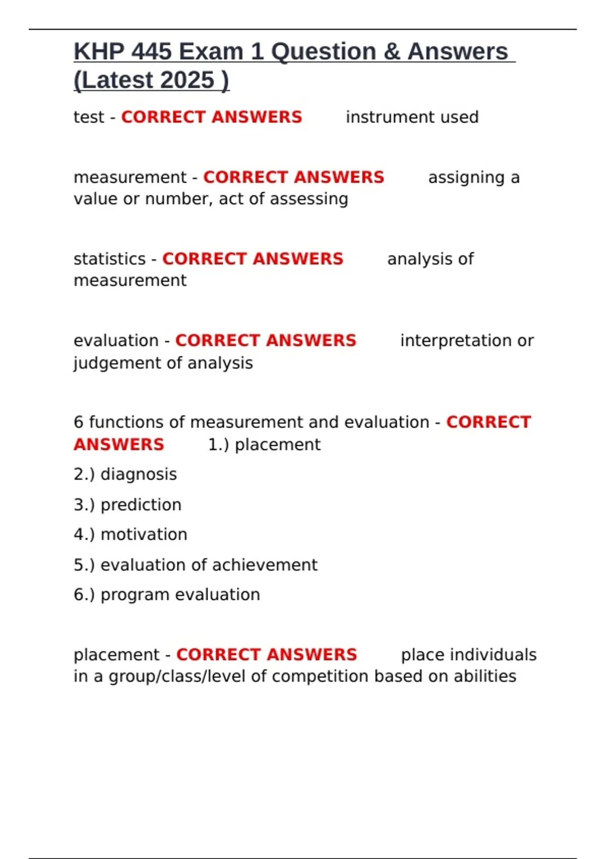 KHP 445 Exam 1 Question & Answers