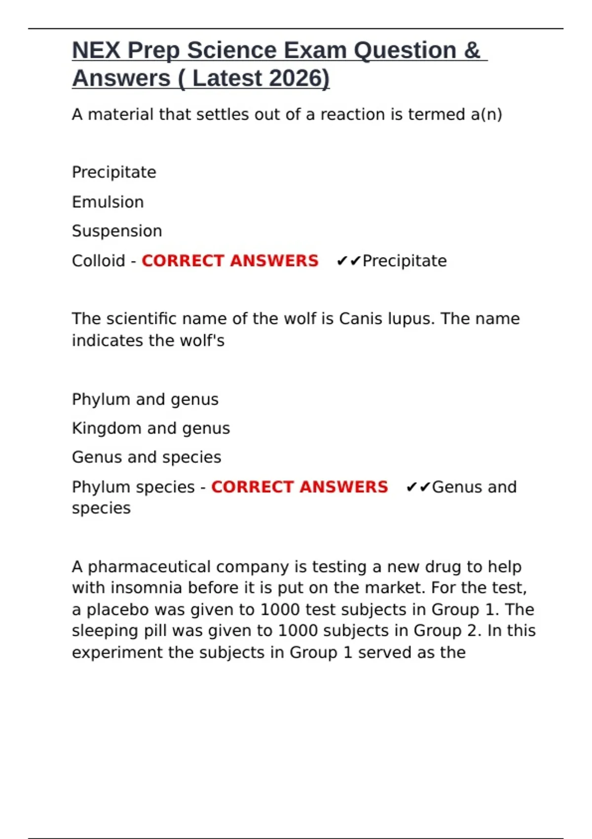 NEX Prep Science Exam Question & Answers ( Latest 2026).docx