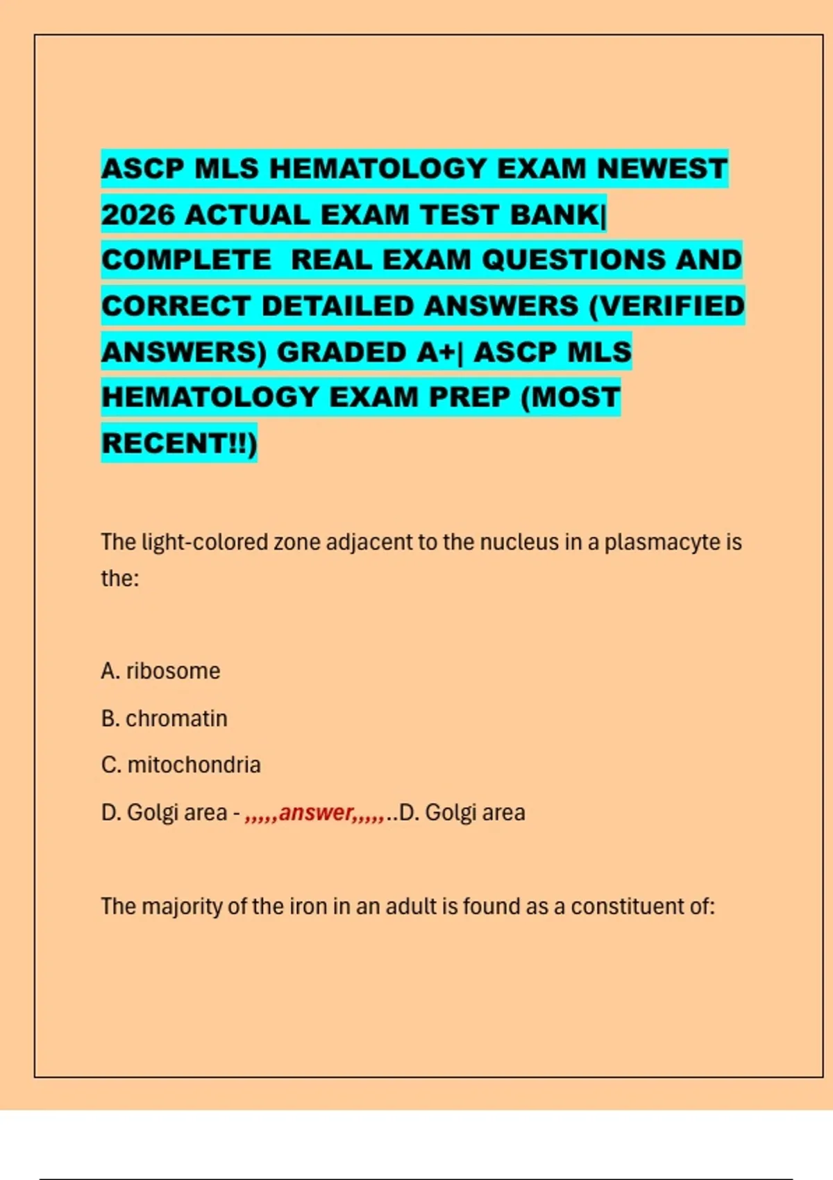 ANSWERS) GRADED A+| ASCP MLS