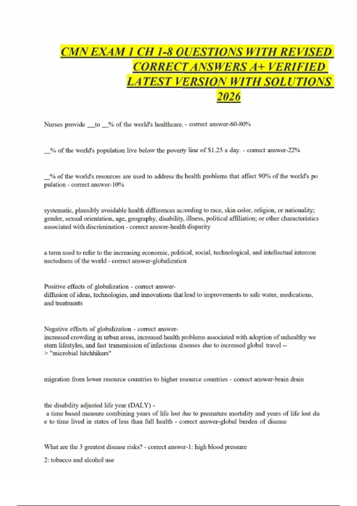 CMN EXAM 1 CH 1-8 QUESTIONS WITH REVISED CORRECT ANSWERS A+ VERIFIED LATEST VERSION WITH SOLUTIONS 2026CMN EXAM 1 CH 1-8 QUESTIONS WITH REVISED CORRECT ANSWERS A+ VERIFIED LATEST VERSION WITH SOLUTIONS 2026CMN EXAM 1 CH 1-8 QUESTIONS WITH REVISED CORRECT ANSWERS A+ VERIFIED LATEST VERSION WITH SOLUTIONS 2026