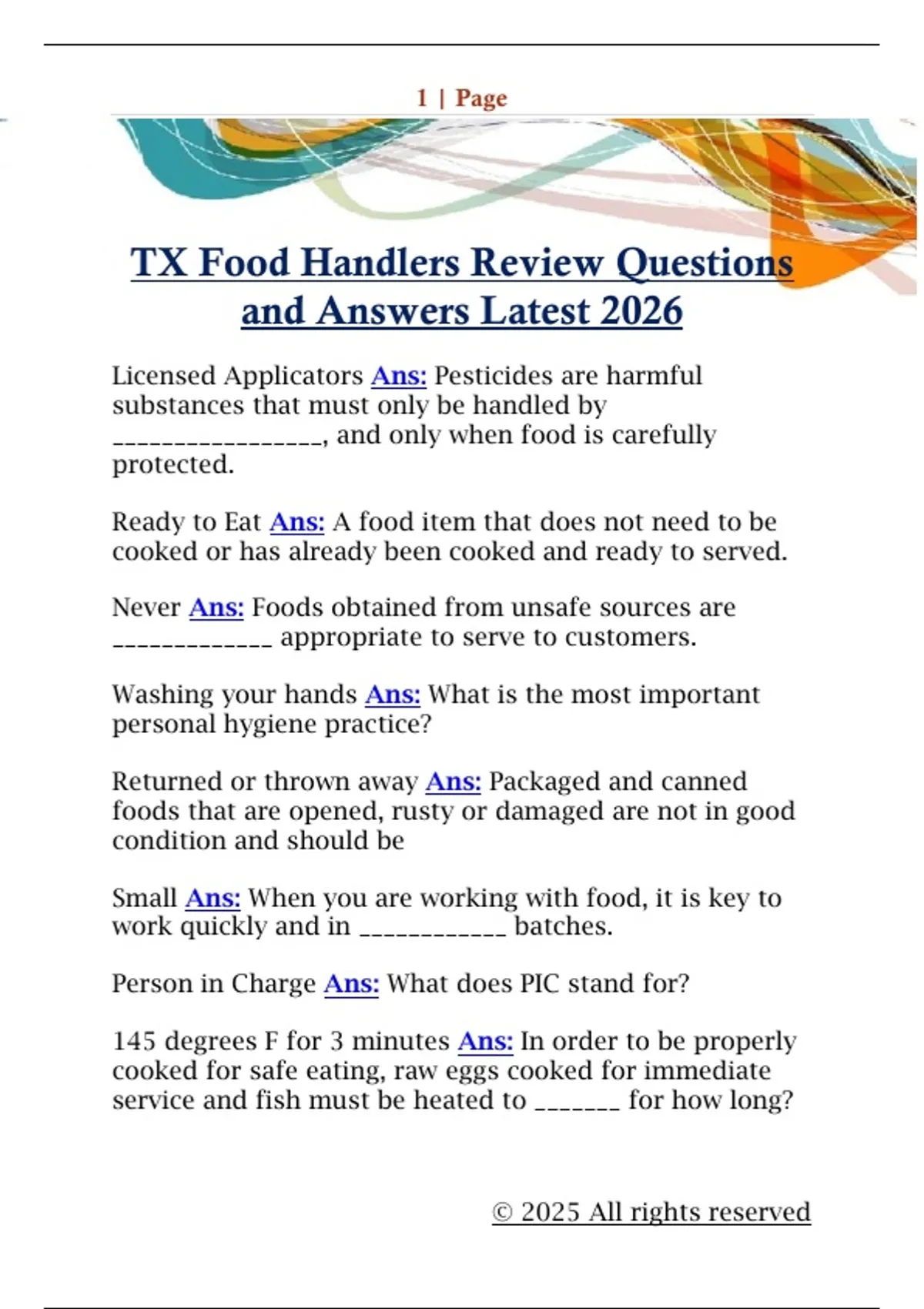 TX Food Handlers Review Questions
