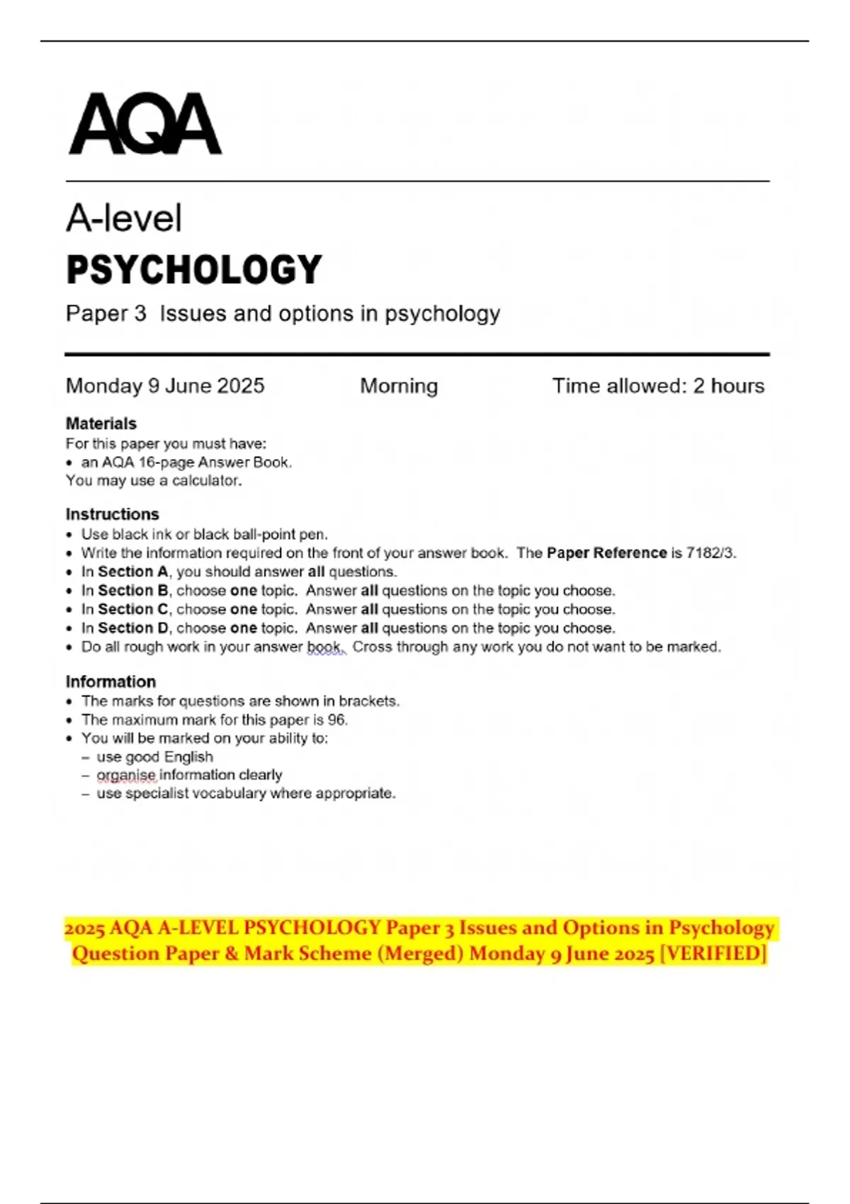 Question Paper & Mark Scheme (Merged) Monday 9 June 2025 [VERIFIED]