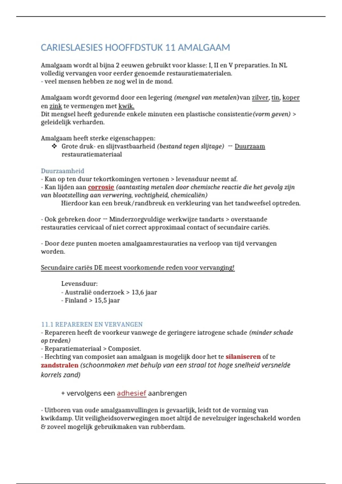 CARIESLAESIES HOOFFDSTUK 11 AMALGAAM