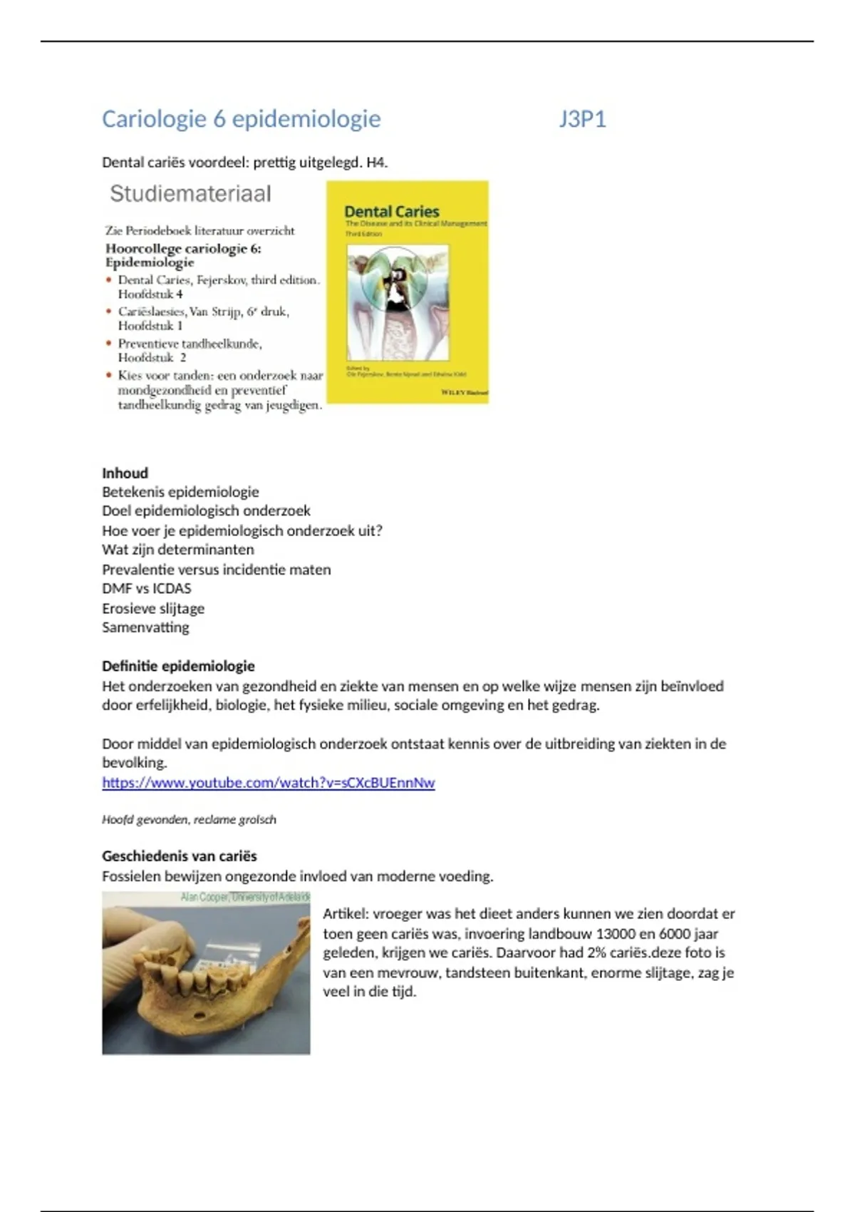 Samenvatting van 17 pagina's voor het vak Cariologie aan de InHolland (Cariëslaesie)