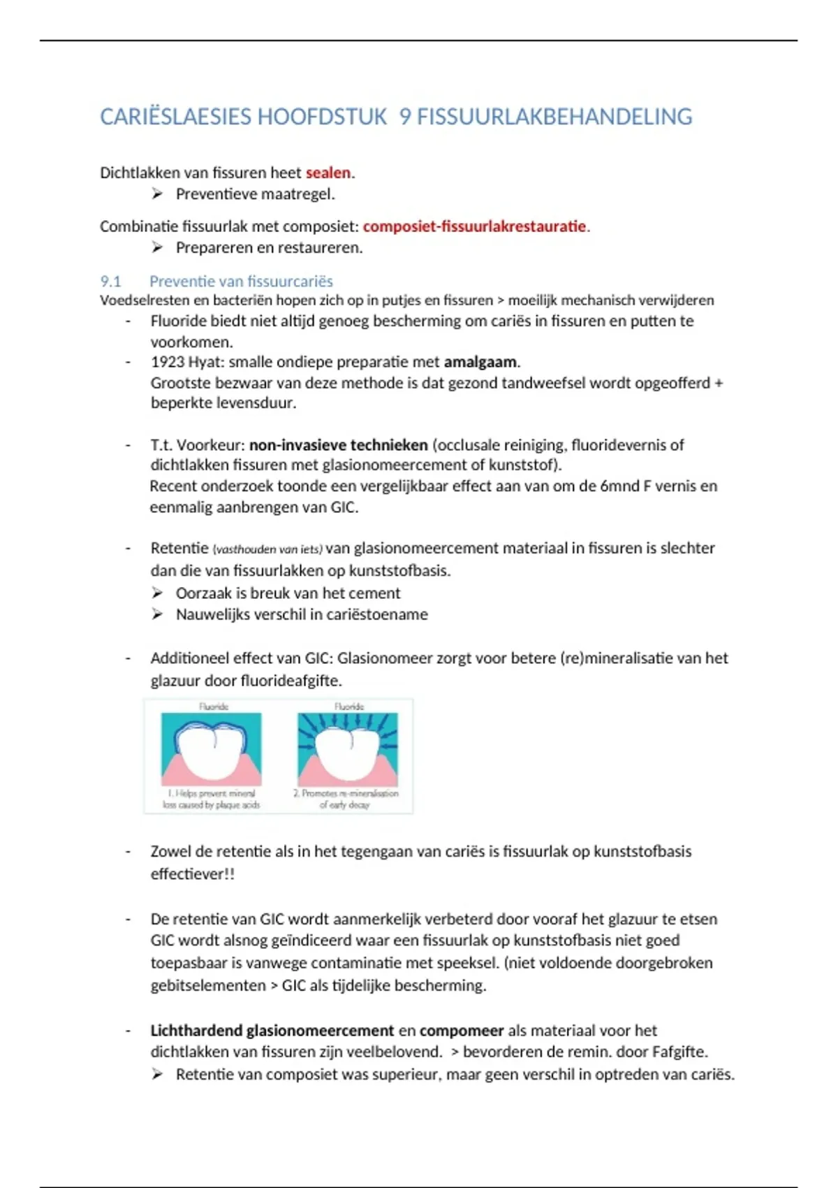 Samenvatting van 7 pagina's voor het vak Cariologie aan de InHolland (Cariëslaesie)