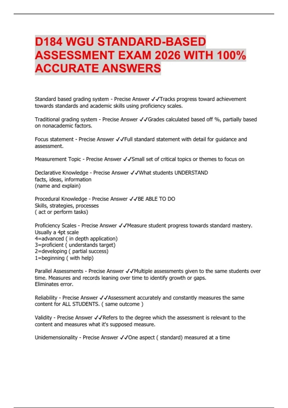 Standard based grading system - Precise Answer ✔✔Tracks progress toward achievement