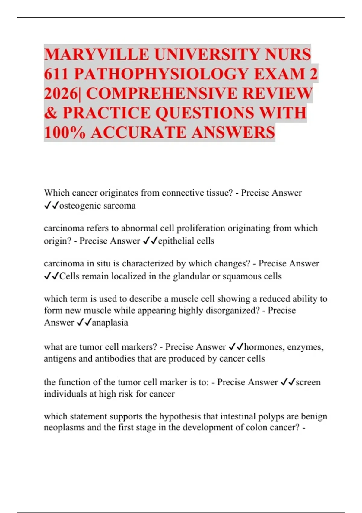 Answer ✔✔anaplasia