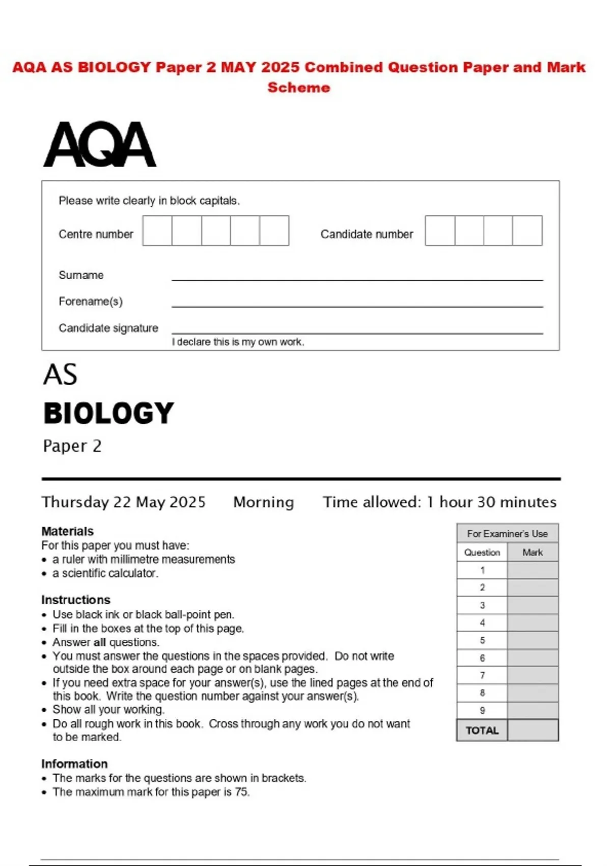 AQA AS BIOLOGY Paper 2 MAY 2025 Combined Question Paper and Mark Scheme