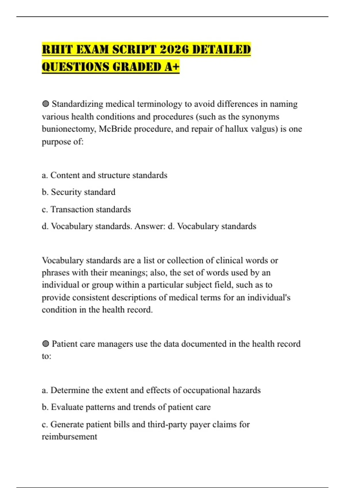 RHIT EXAM SCRIPT 2026 DETAILED QUESTIONS GRADED A+
