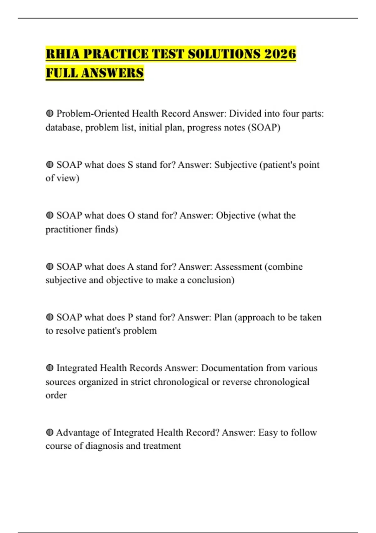 RHIA PRACTICE TEST SOLUTIONS 2026 FULL ANSWERS