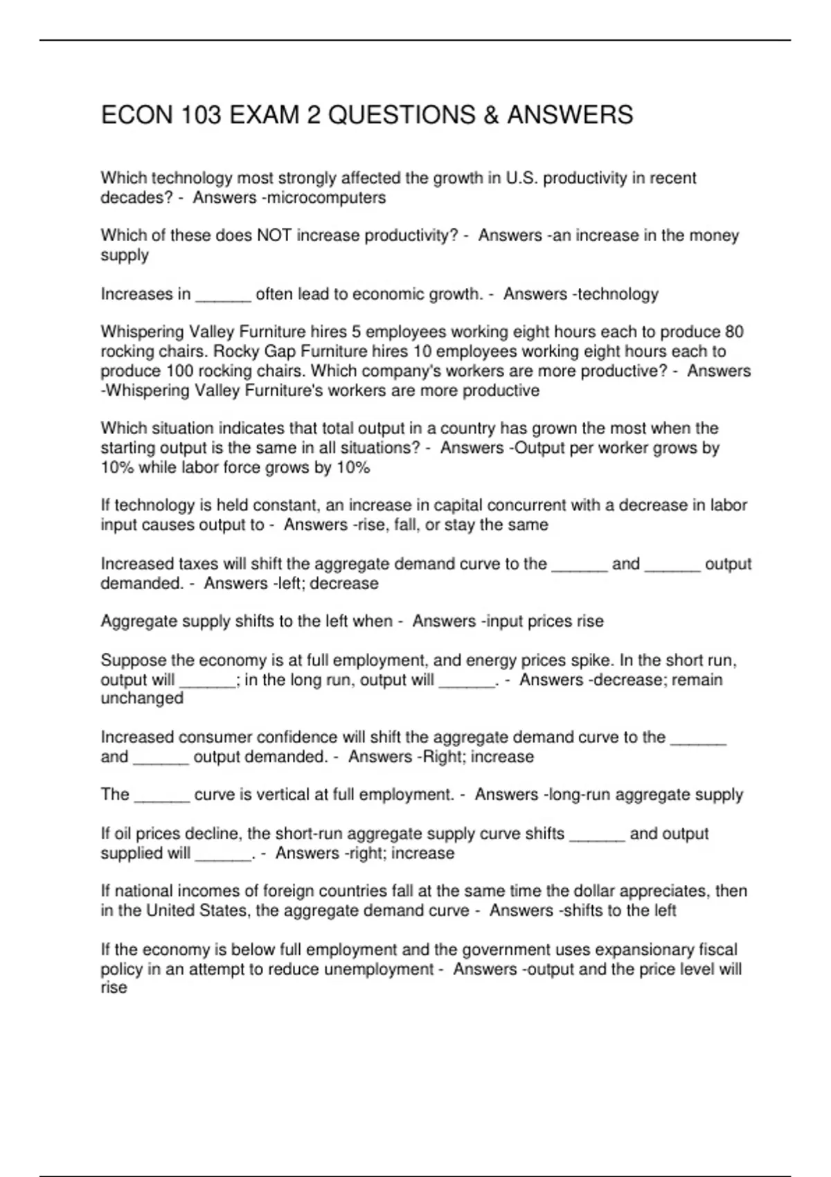 ECON 103 EXAM 2 QUESTIONS & ANSWERS