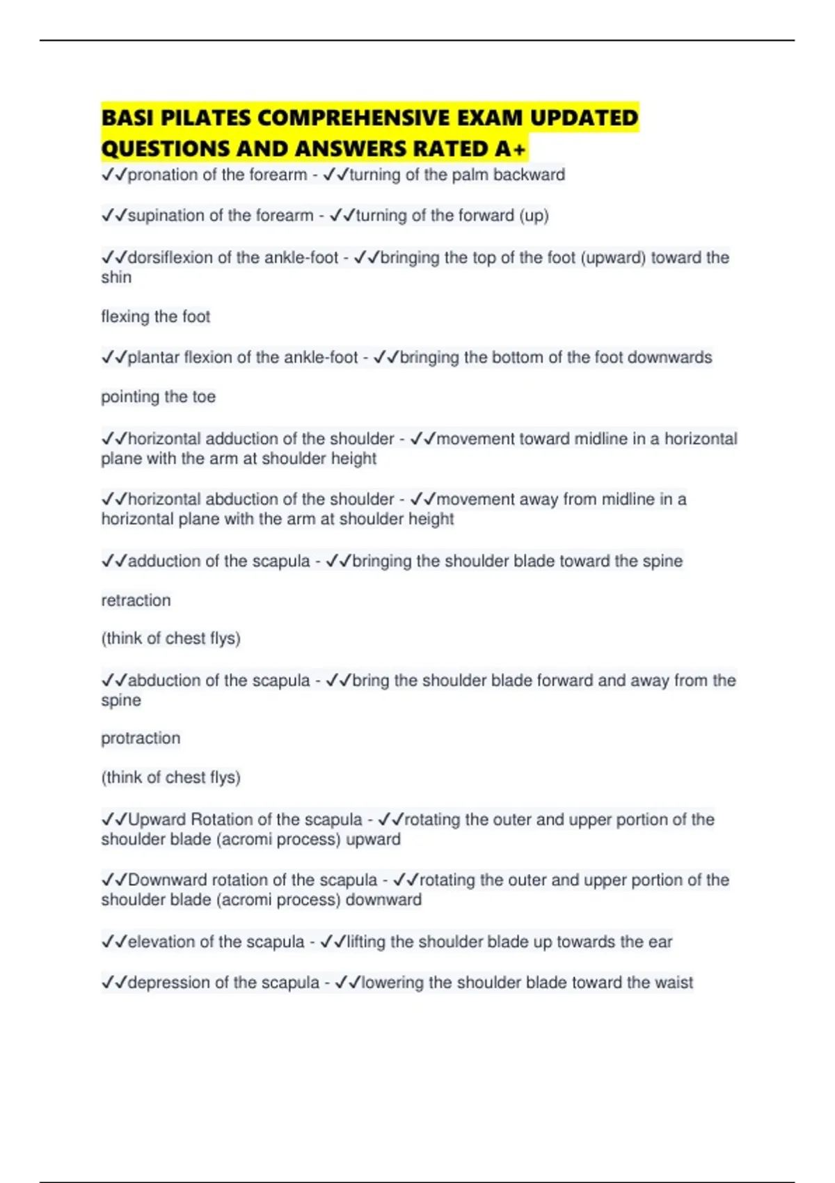 ✔✔depression of the scapula - ✔✔lowering the shoulder blade toward the waist