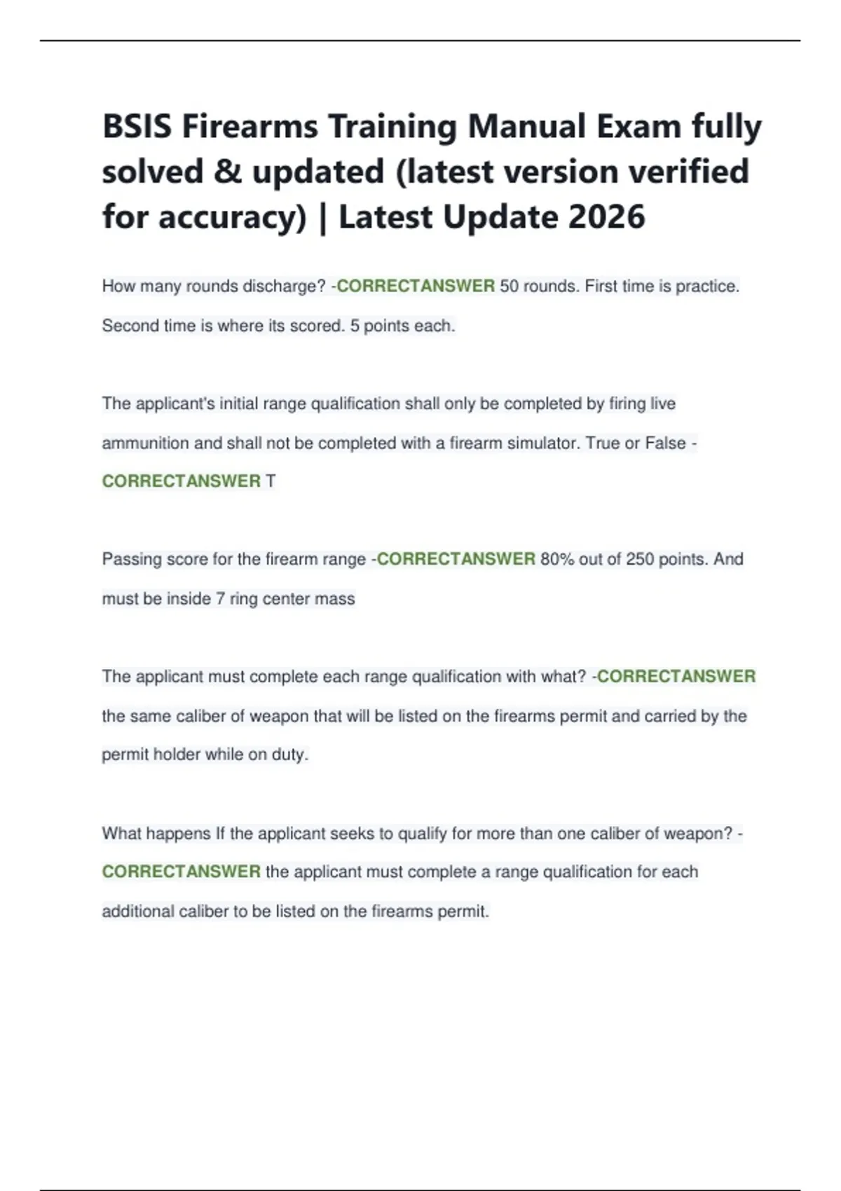 BSIS Firearms Training Manual Exam fully solved & updated (latest version verified for accuracy) | Latest Update 2026