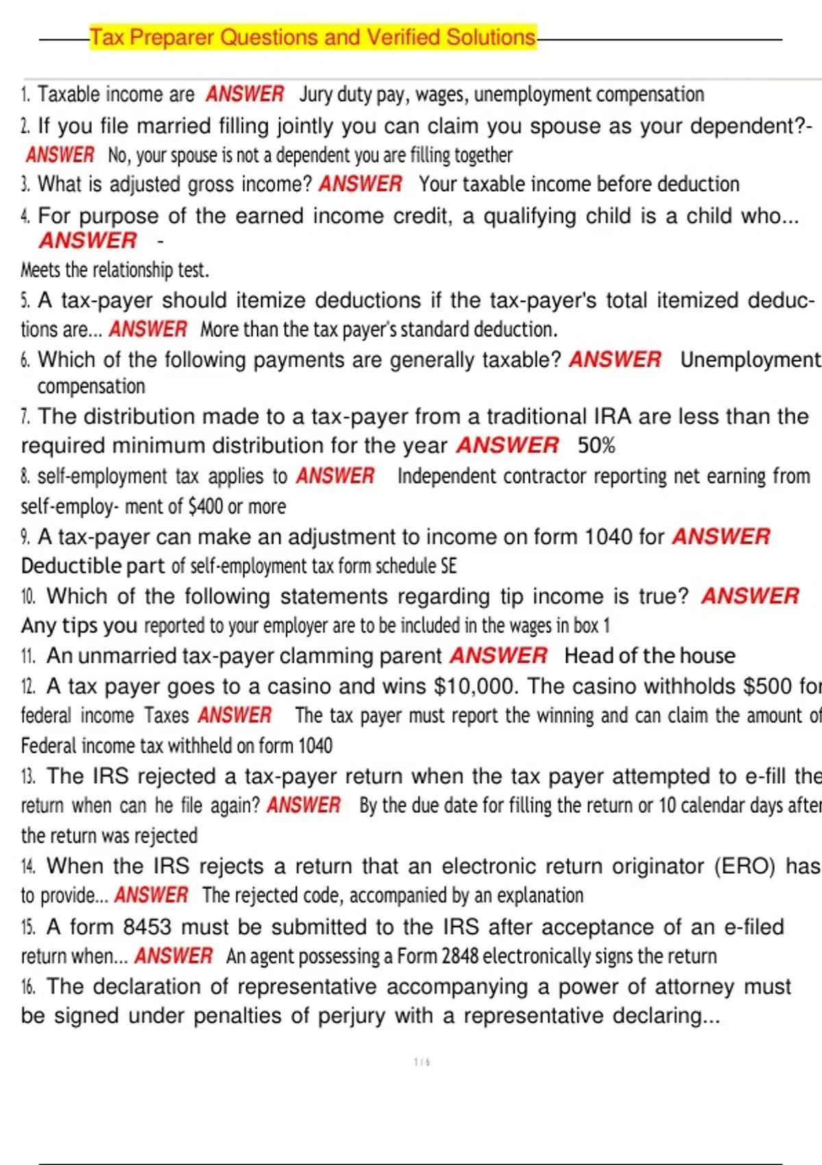 Tax Preparer Questions and Verified Solutions