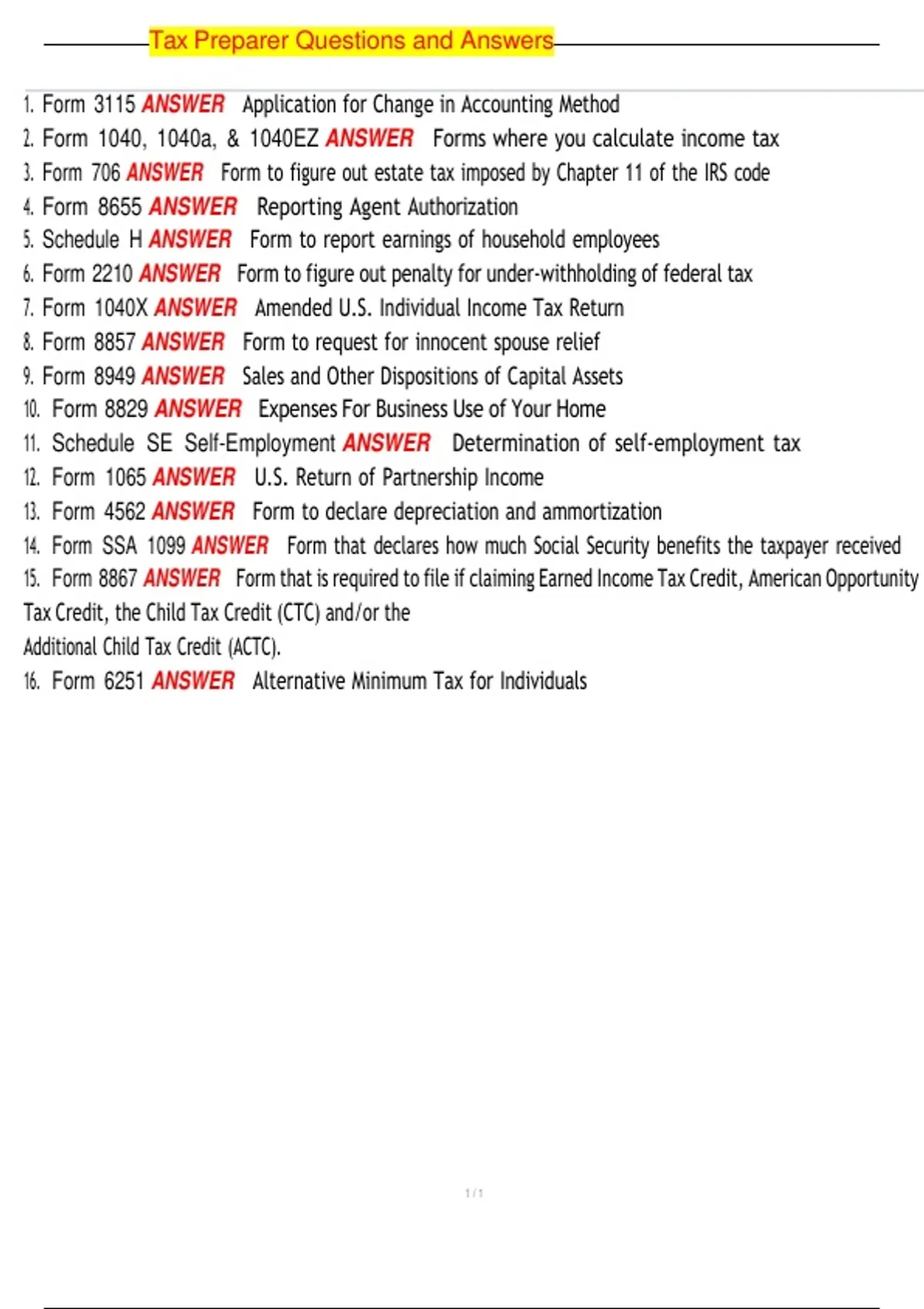 2. Form 1040, 1040a, & 1040EZ ANSWER Forms where you calculate income tax
