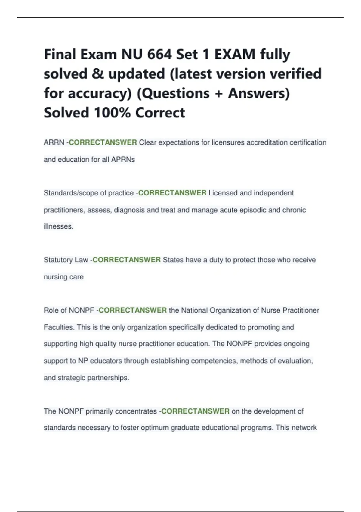 Final Exam NU 664 Set 1 EXAM fully