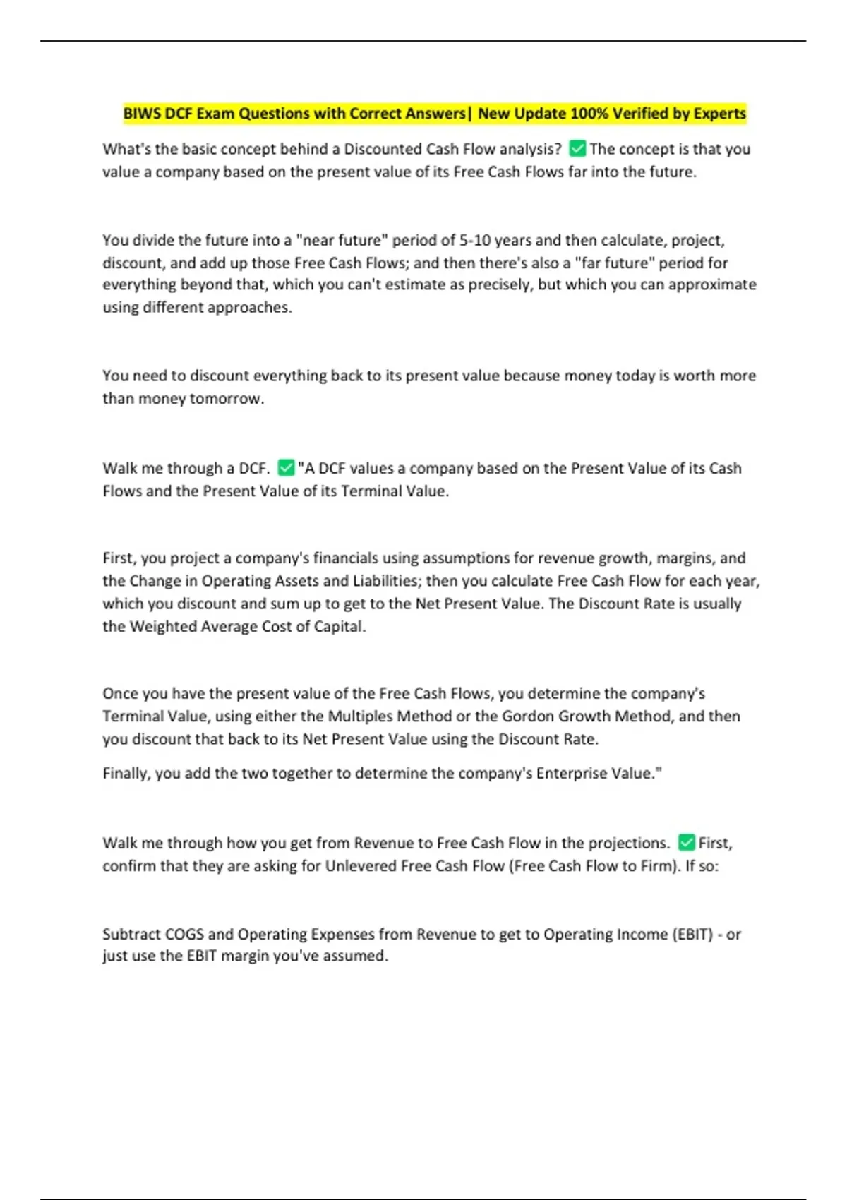 BIWS DCF Exam Questions with Correct Answers| New Update 100% Verified by Experts